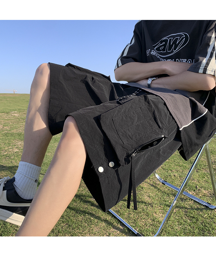 보라색 기능성 툴링 반바지 남성 여름 얇은 빠른 건조 바지 도파민 미국식 충전 바지스토어 가기