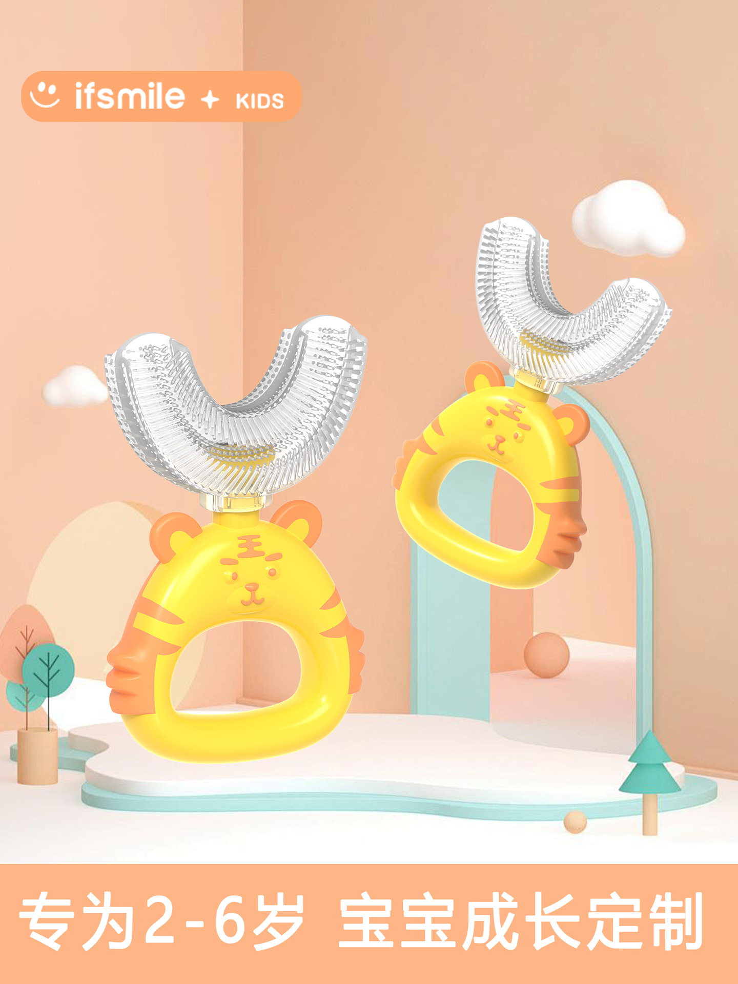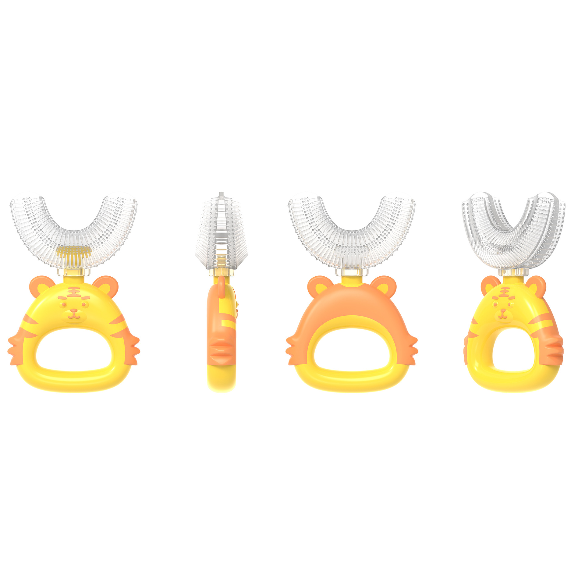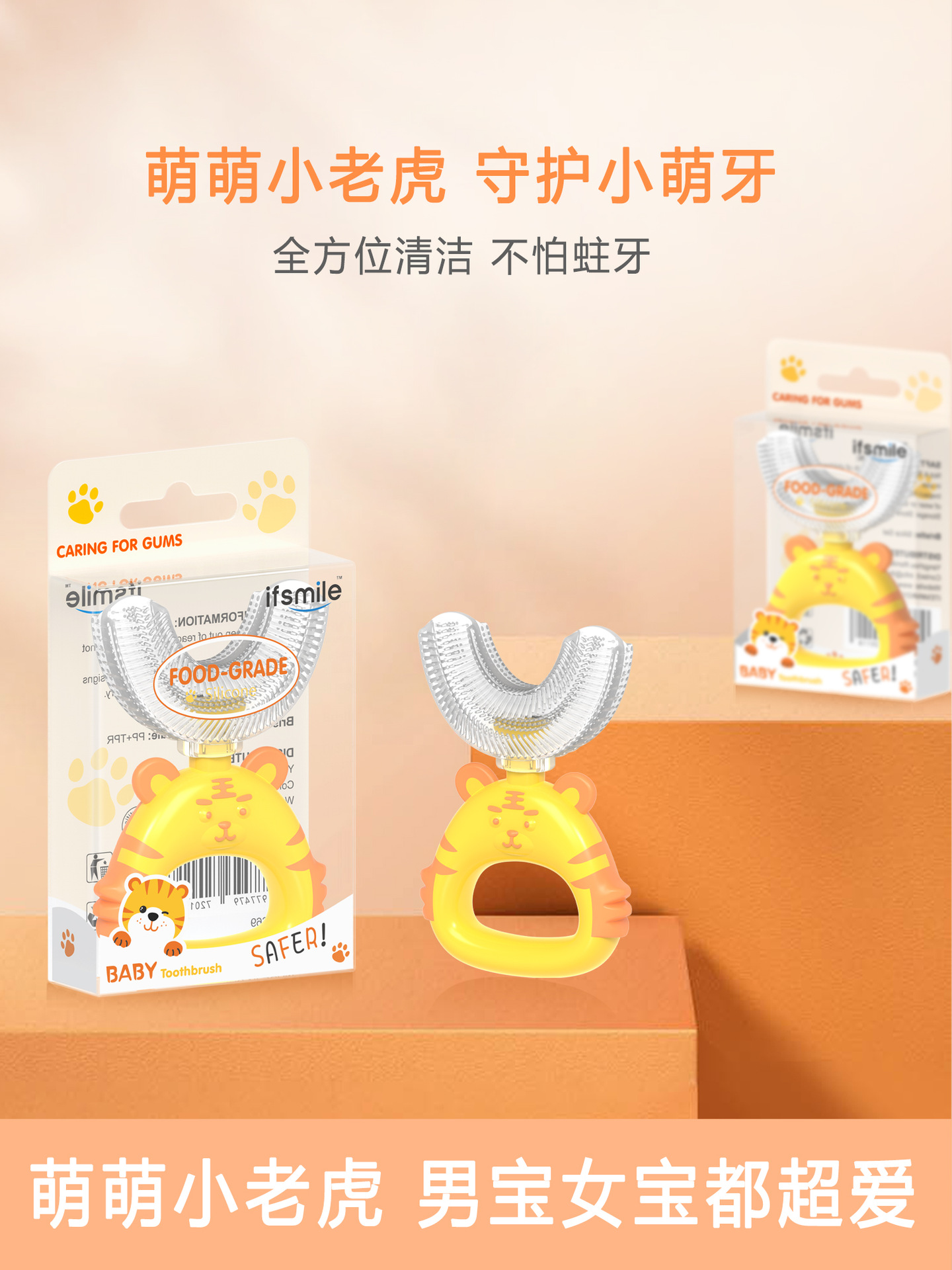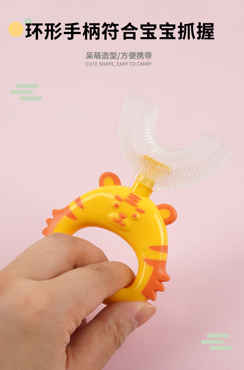 유치 훈련용 칫솔 U자형 어린이 칫솔 만화 호랑이 아기 유아 1세-6세 수동 실리콘 구강용스토어 가기
