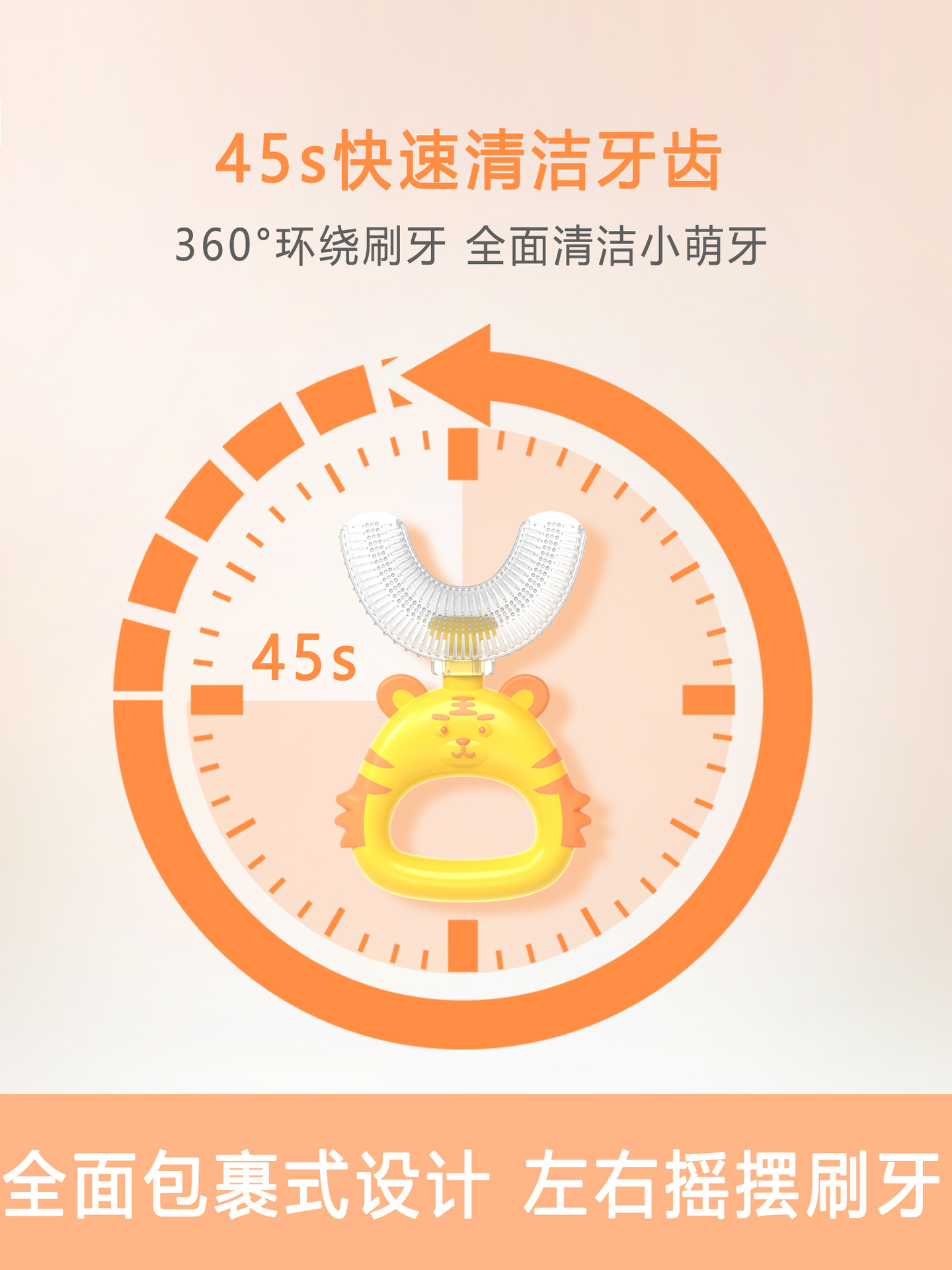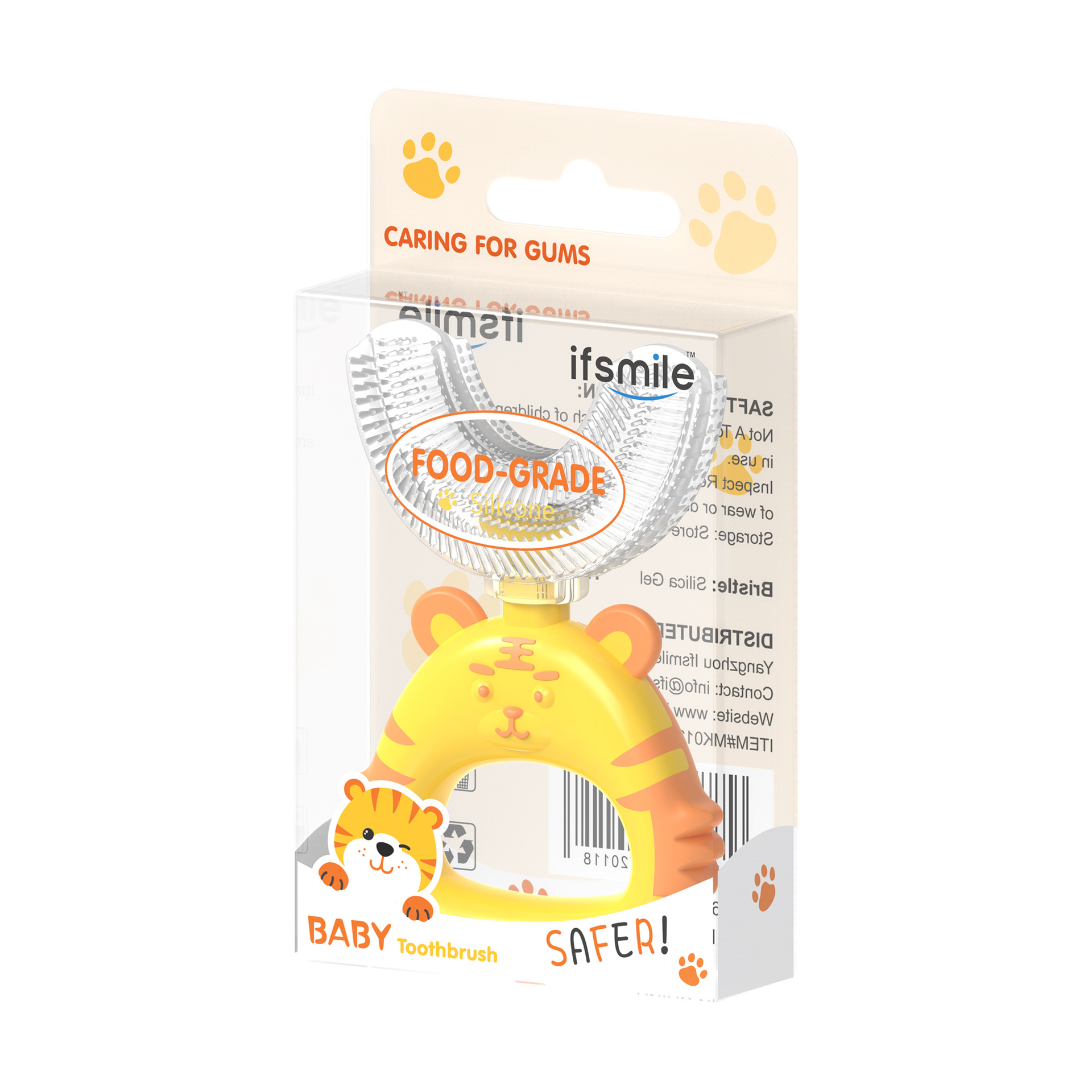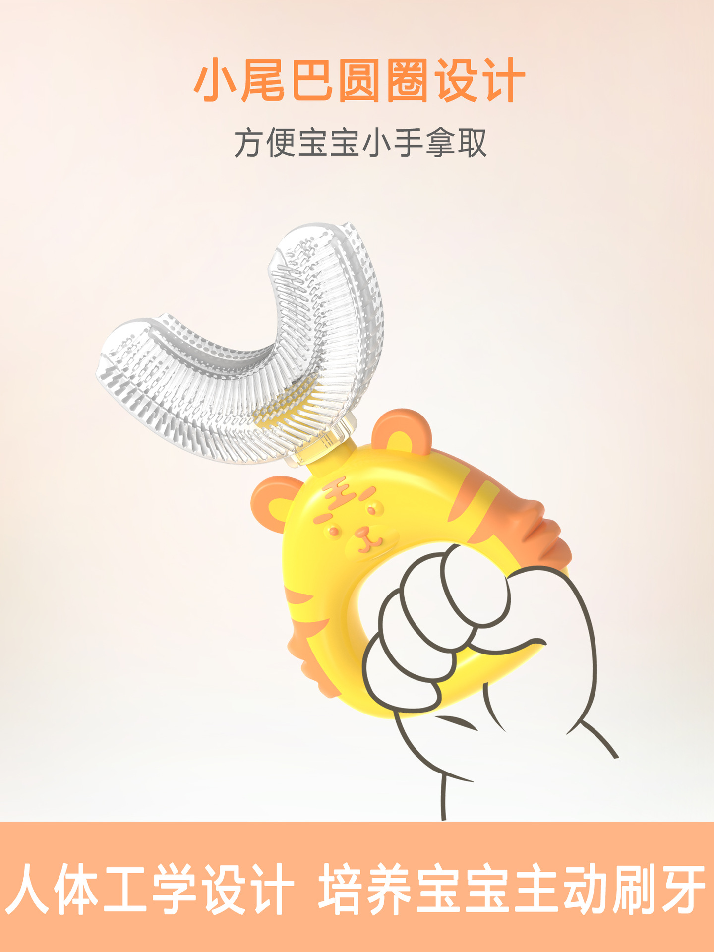 유치 훈련용 칫솔 U자형 어린이 칫솔 만화 호랑이 아기 유아 1세-6세 수동 실리콘 구강용스토어 가기