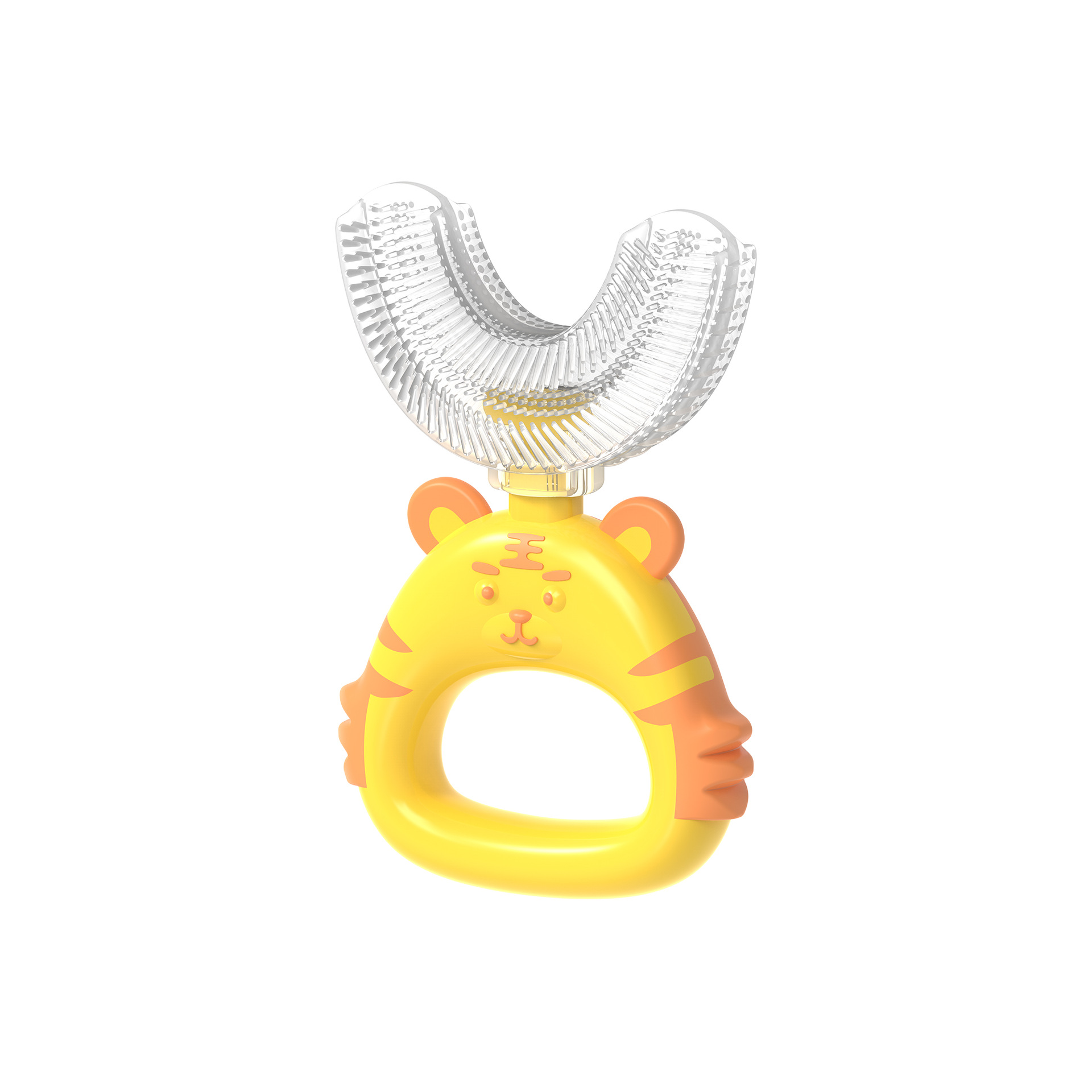 유치 훈련용 칫솔 U자형 어린이 칫솔 만화 호랑이 아기 유아 1세-6세 수동 실리콘 구강용