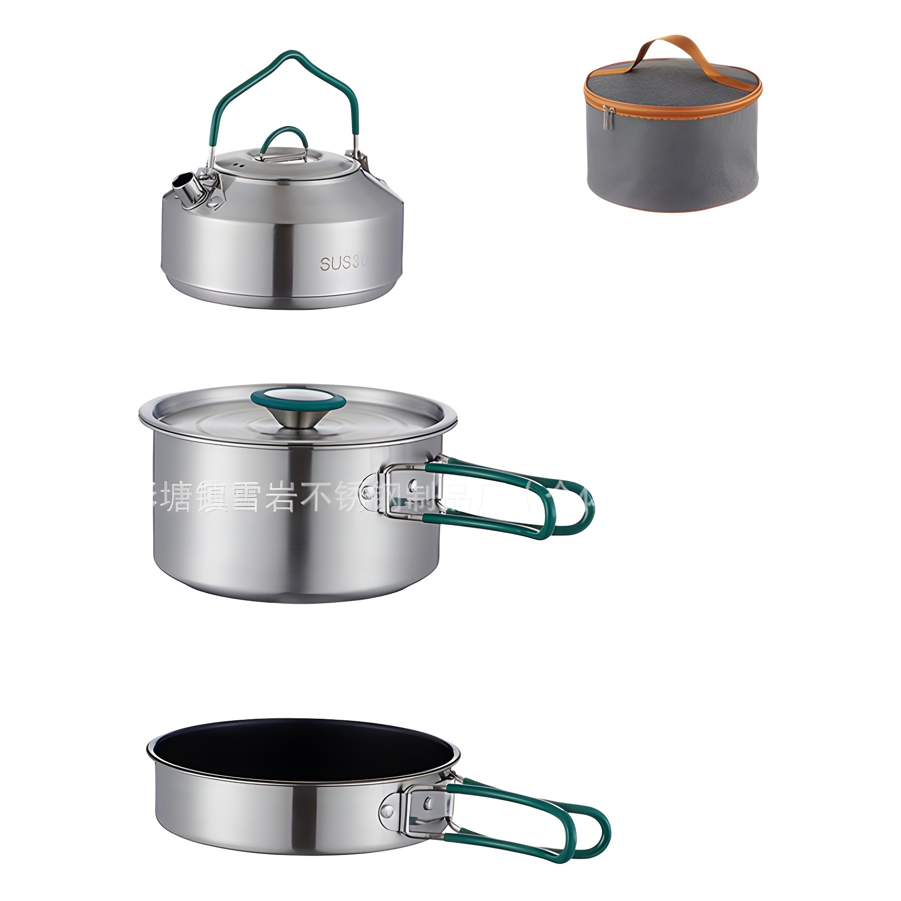 • 304 캠핑 3 피스 세트 1L 주전자 1.6L 요리 냄비 0.9L 스틱 프라이팬 보관 가방