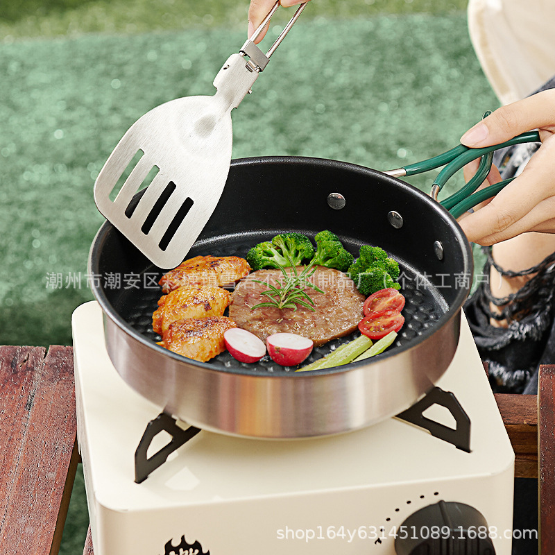 • 304 캠핑 1L 녹색 접는 손잡이 비 스틱 프라이팬