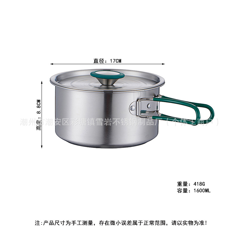 • 304 캠핑 1.6L 녹색 접는 손잡이 냄비