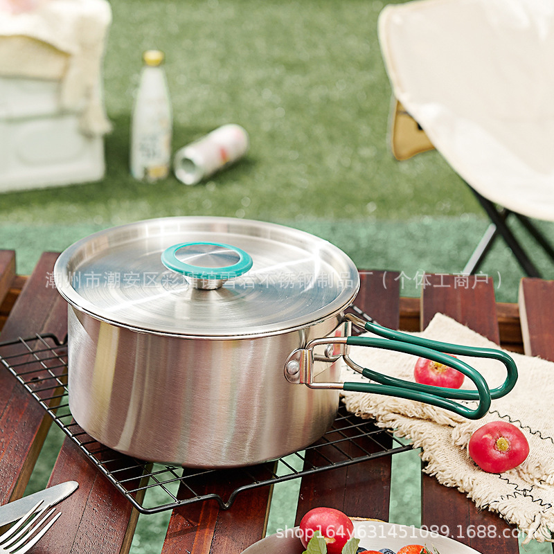 304 스테인레스 스틸 야외 세트 포트 휴대용 냄비 캠핑 조리기구 캠핑 주전자 피크닉 식기 장비스토어 가기
