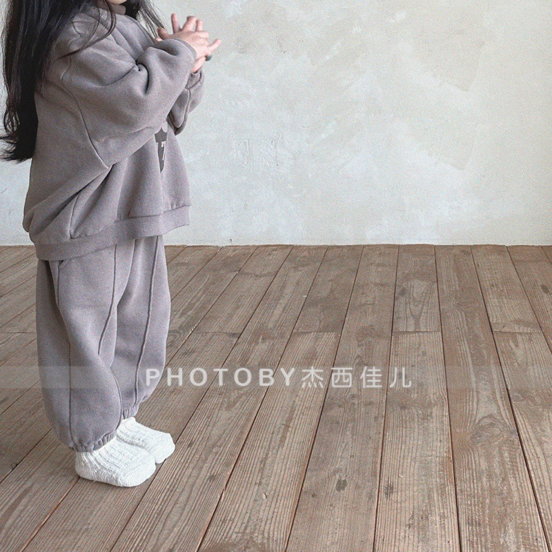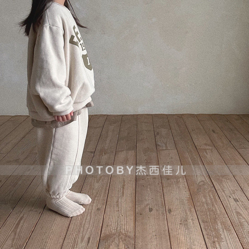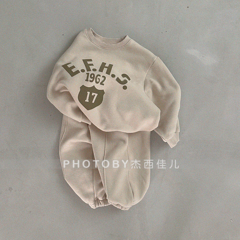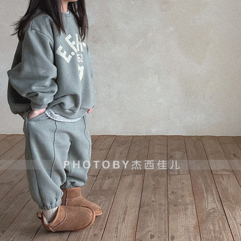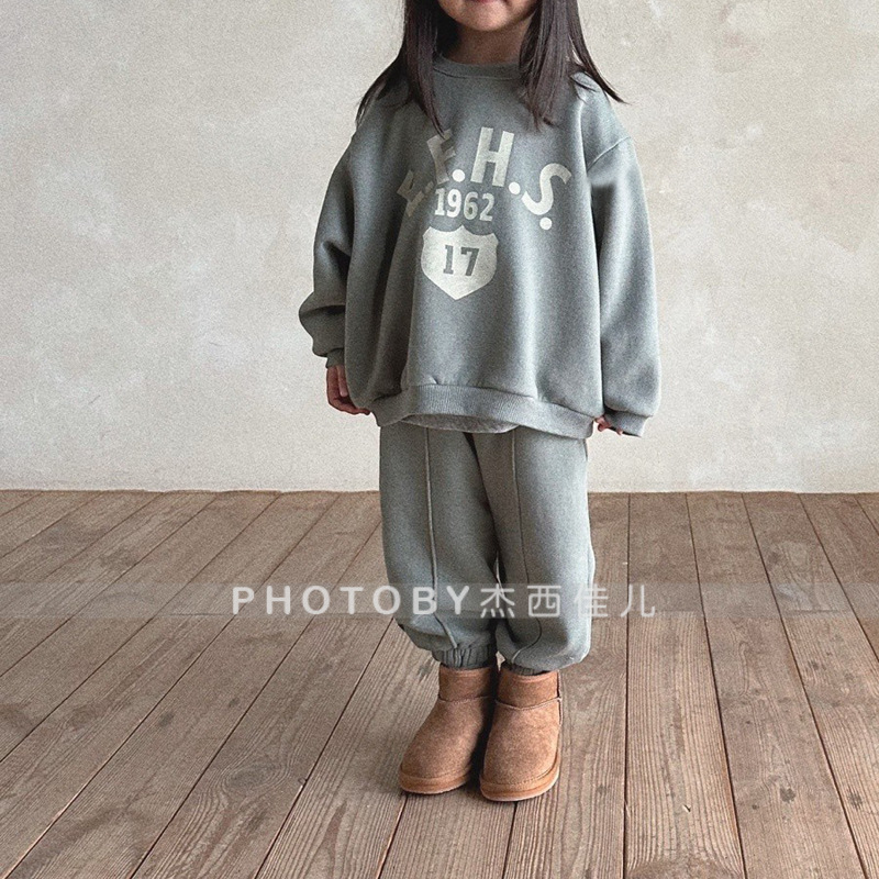 어린이 Ins 한국식 새로운 가을과 겨울 세트 스타일 투피스 세트 소년 소녀를위한 편지 인쇄 캐주얼 양털 땀