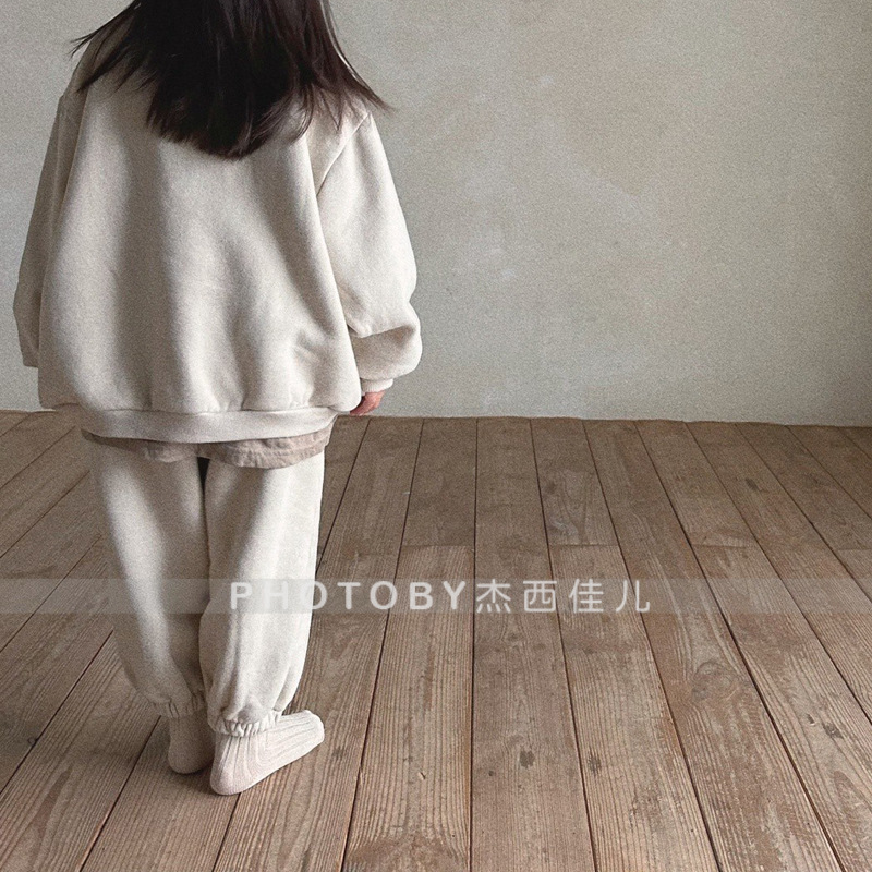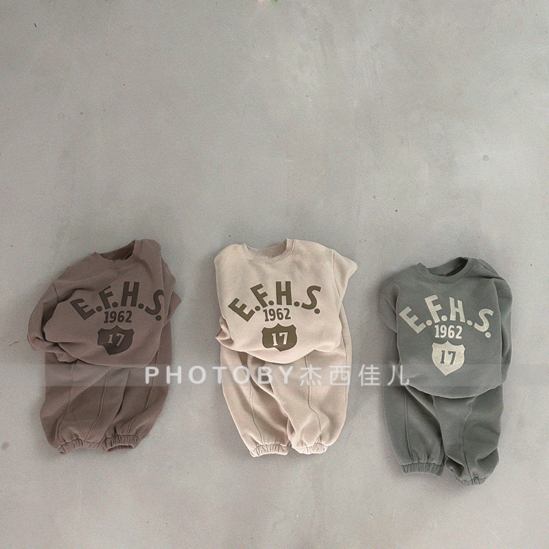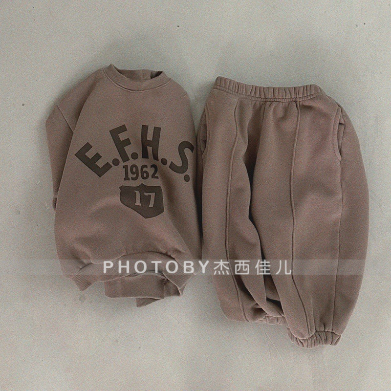 어린이 Ins 한국식 새로운 가을과 겨울 세트 스타일 투피스 세트 소년 소녀를위한 편지 인쇄 캐주얼 양털 땀스토어 가기