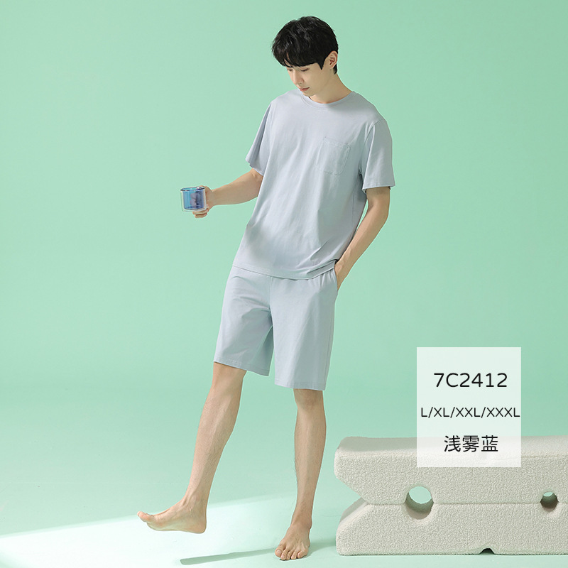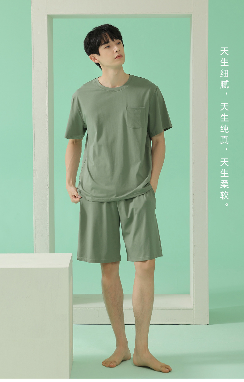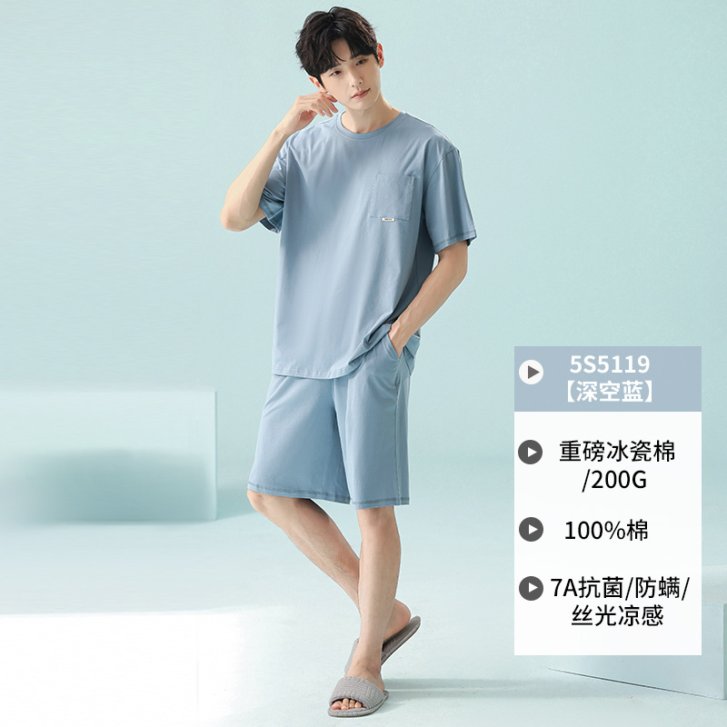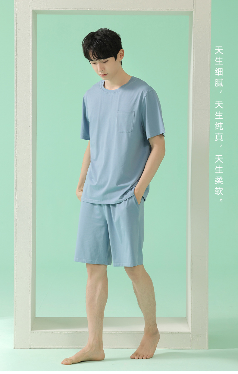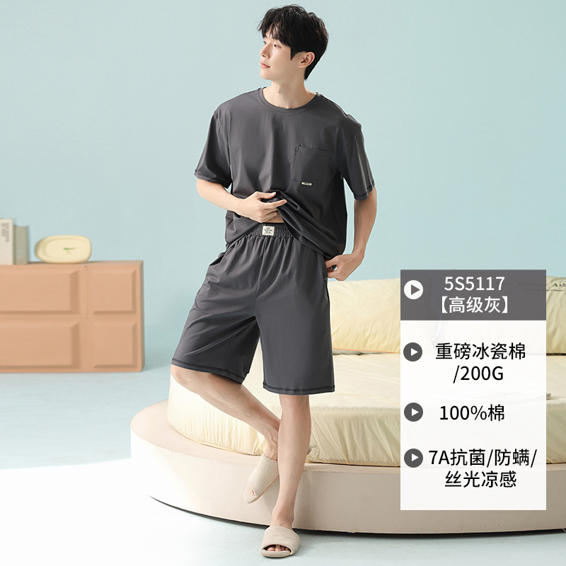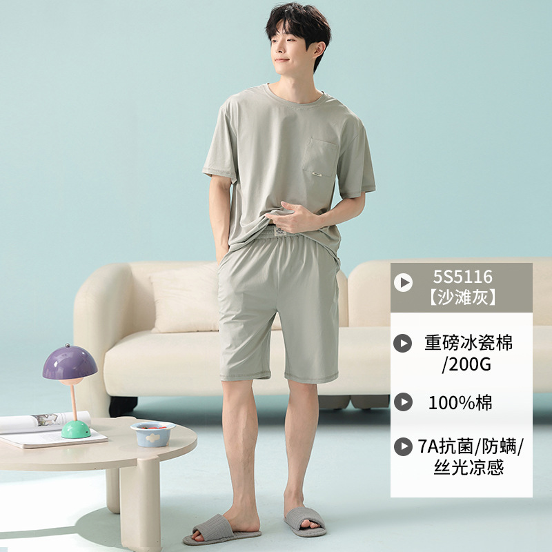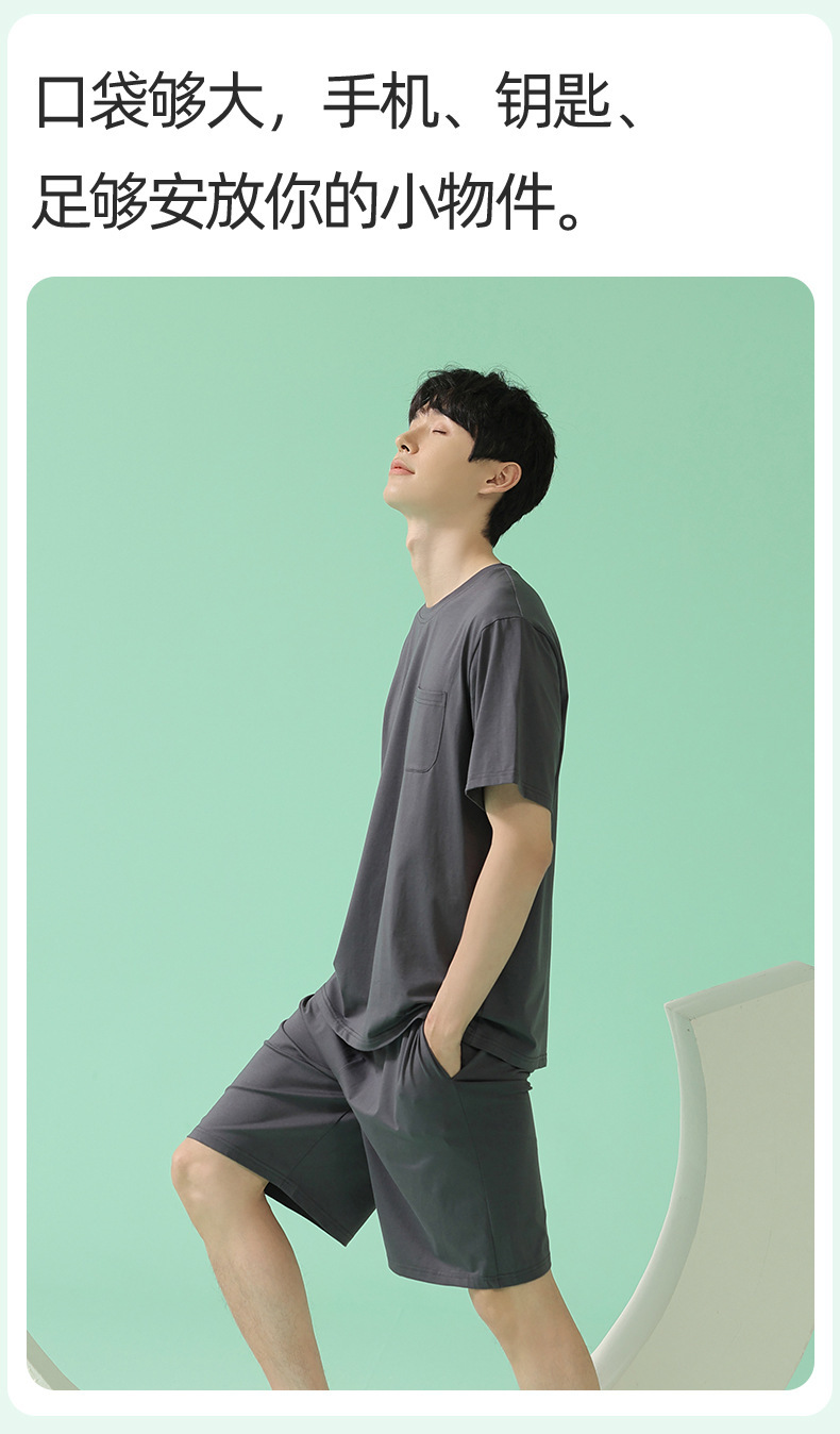 쿨 모달 파자마 남성용 반바지 얇은 남성용 홈 의류 여름 아이스 실크 코튼 느슨한 솔리드 컬러 세트스토어 가기