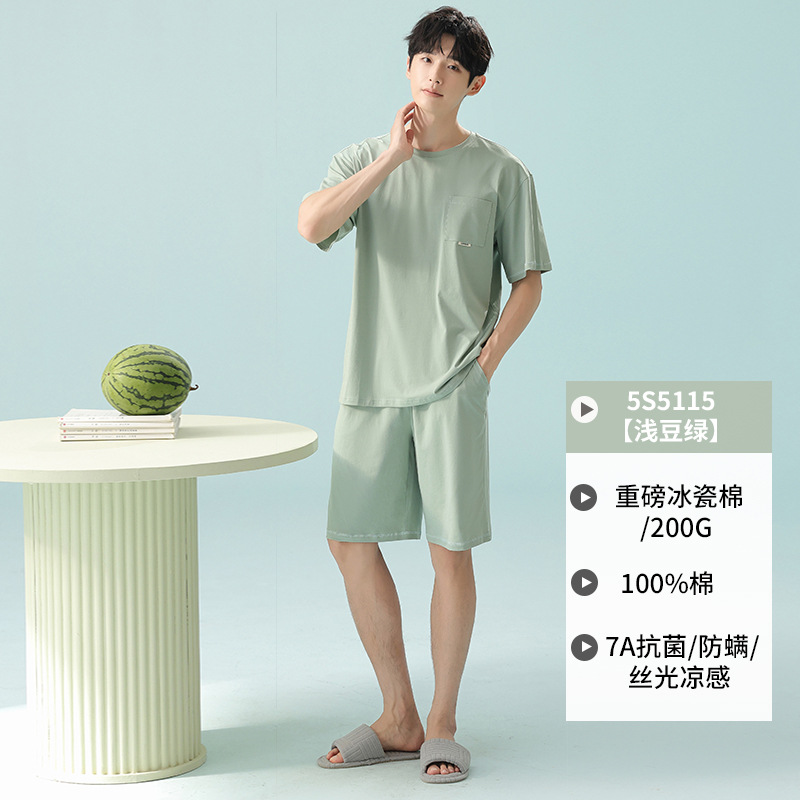 쿨 모달 파자마 남성용 반바지 얇은 남성용 홈 의류 여름 아이스 실크 코튼 느슨한 솔리드 컬러 세트