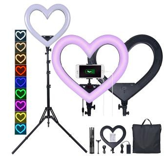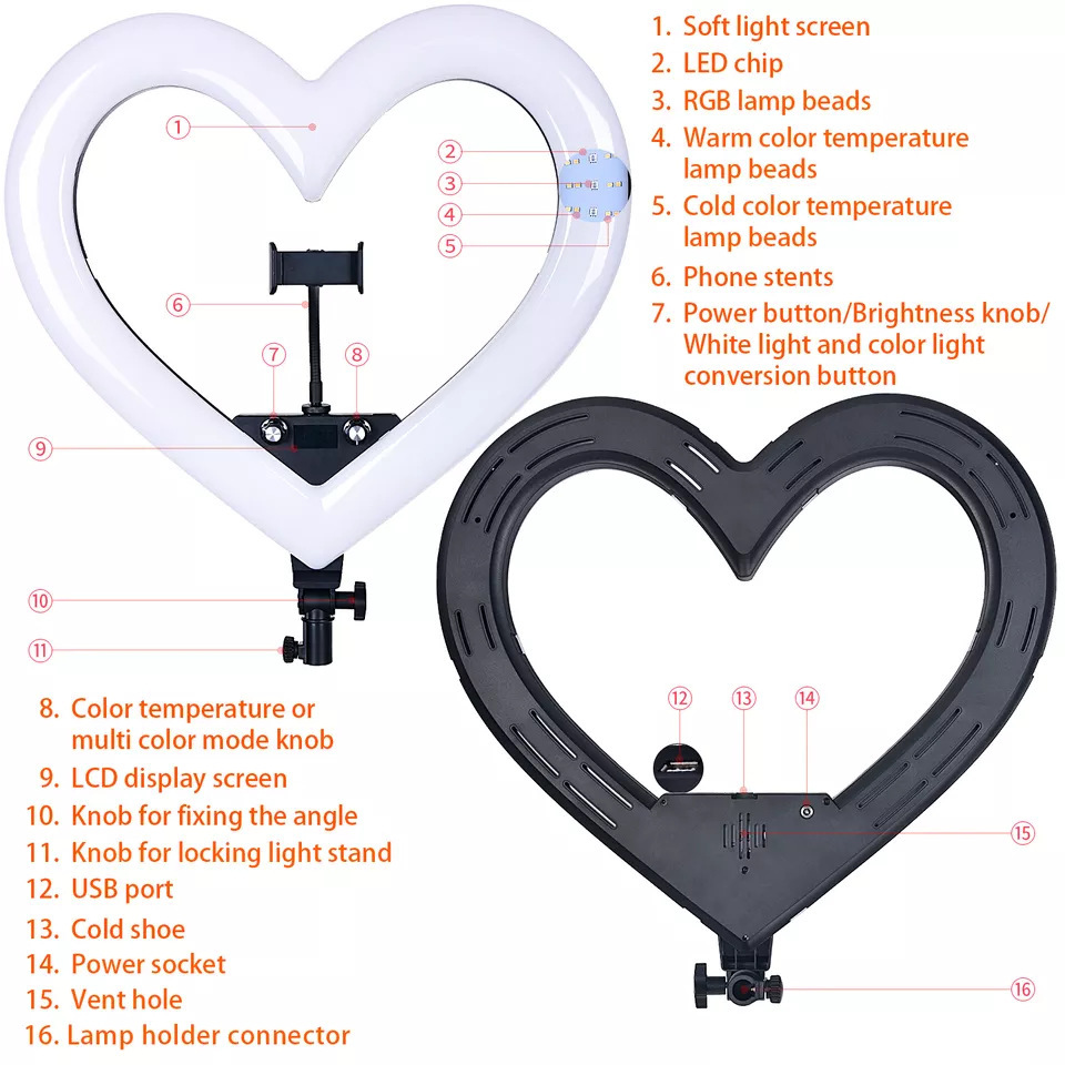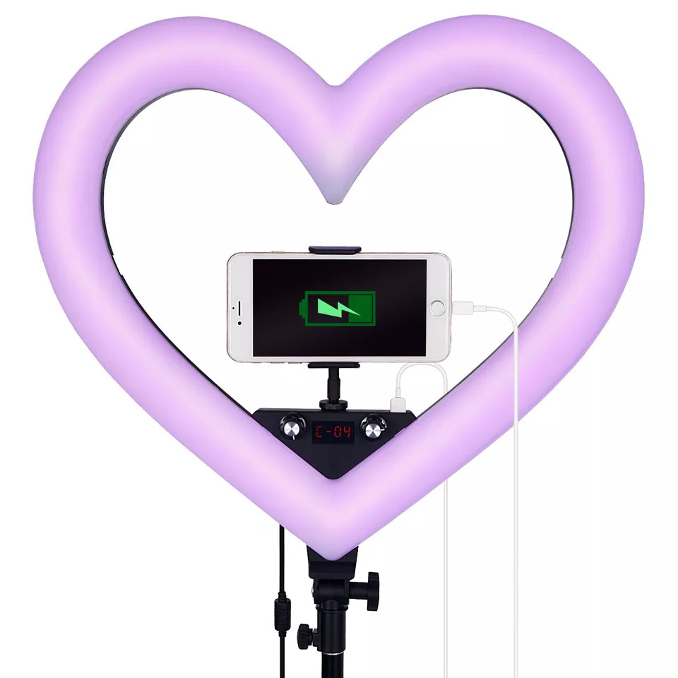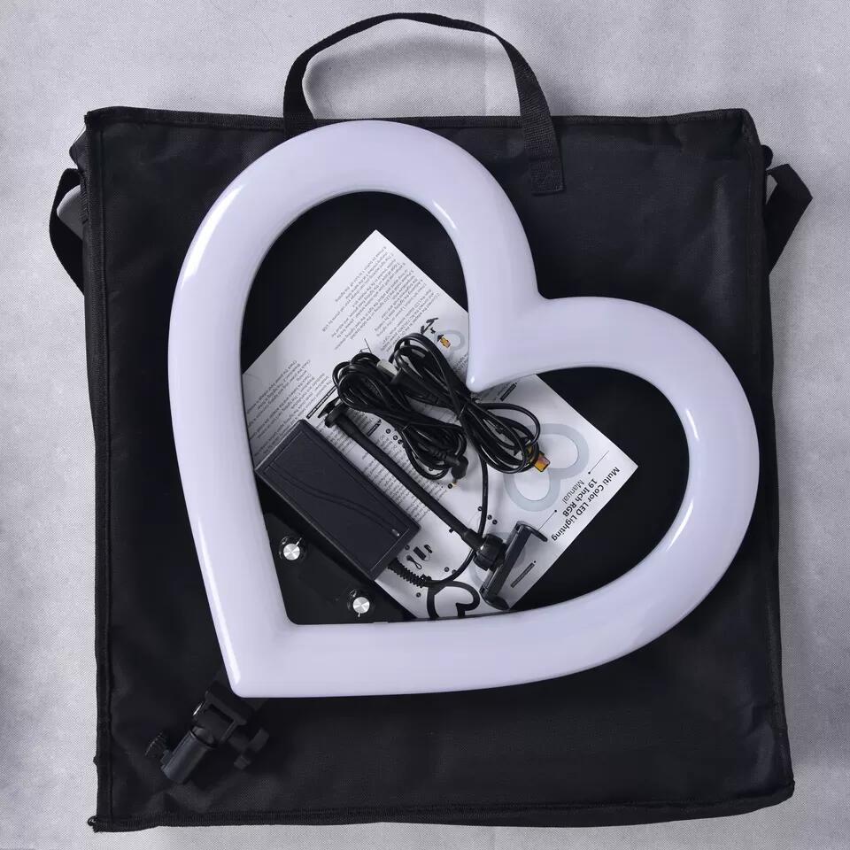 19 인치 RGB 7 색 하트 모양의 라이브 라이트 앵커 뷰티 부드러운 피부 그물 레드 플로어 램프 링 LED 사진 램프