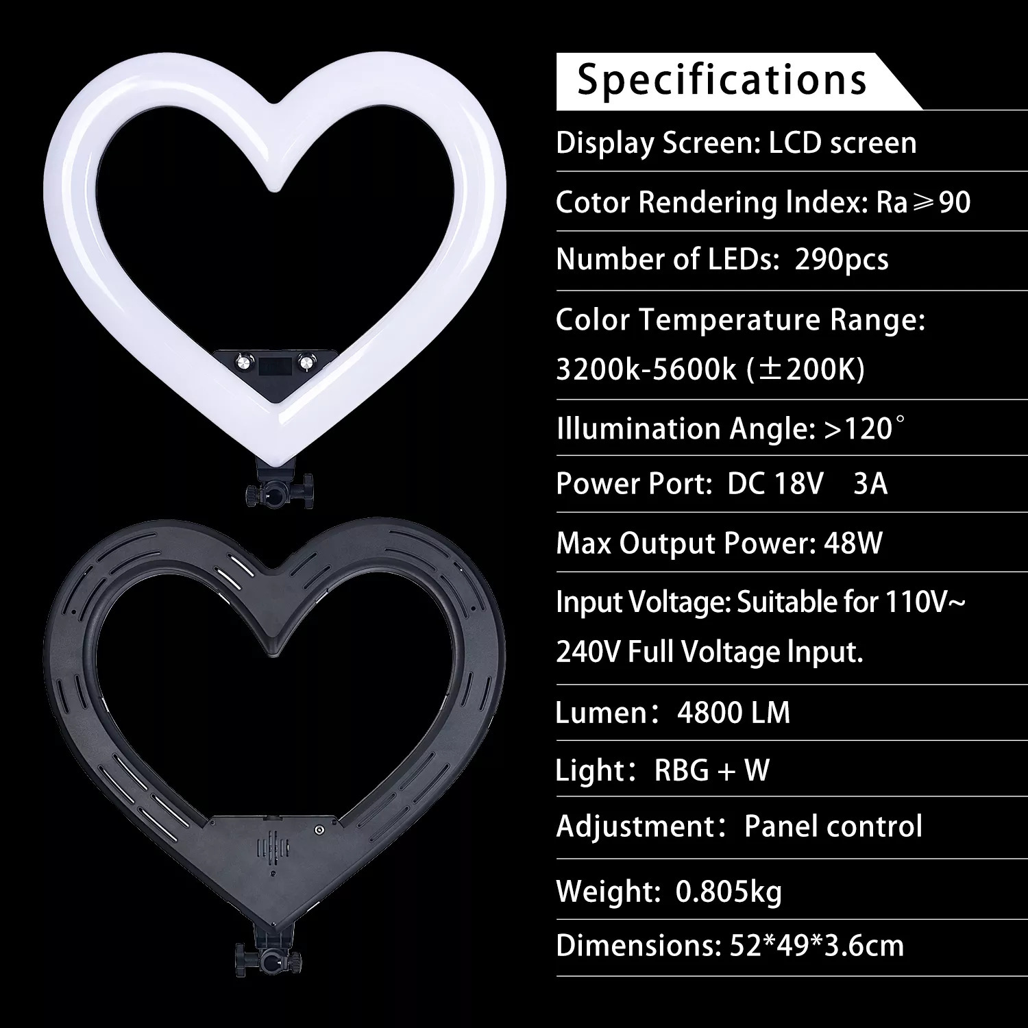 • 19inch 하트 모양 램프 + 2.1m 브래킷(사양 플러그를 참고하세요!)