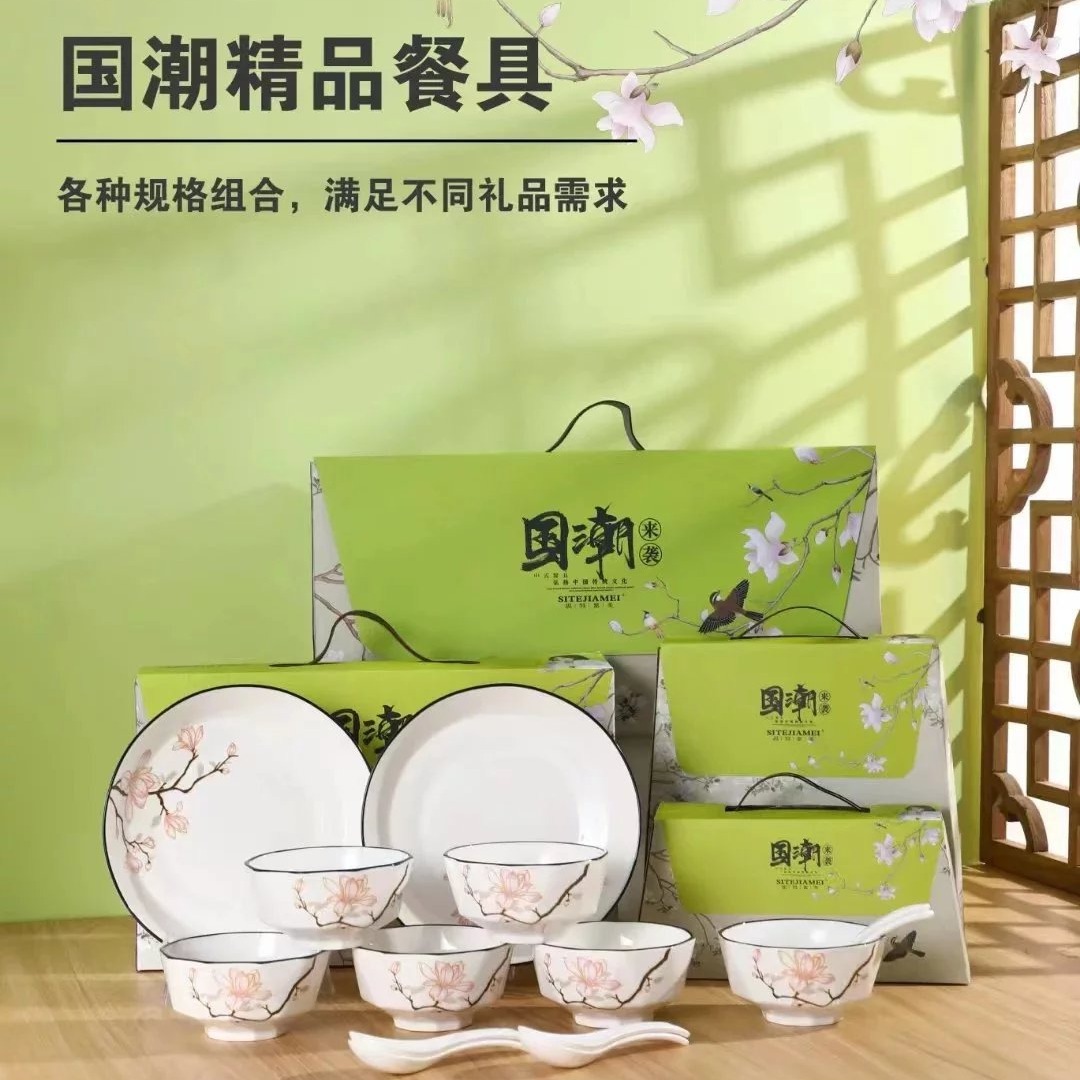세라믹 그릇과 접시 가정용 세트 선물 그릇과 젓가락 세트 선물 상자 이벤트 선물 기념품 오프닝 선물 도매
