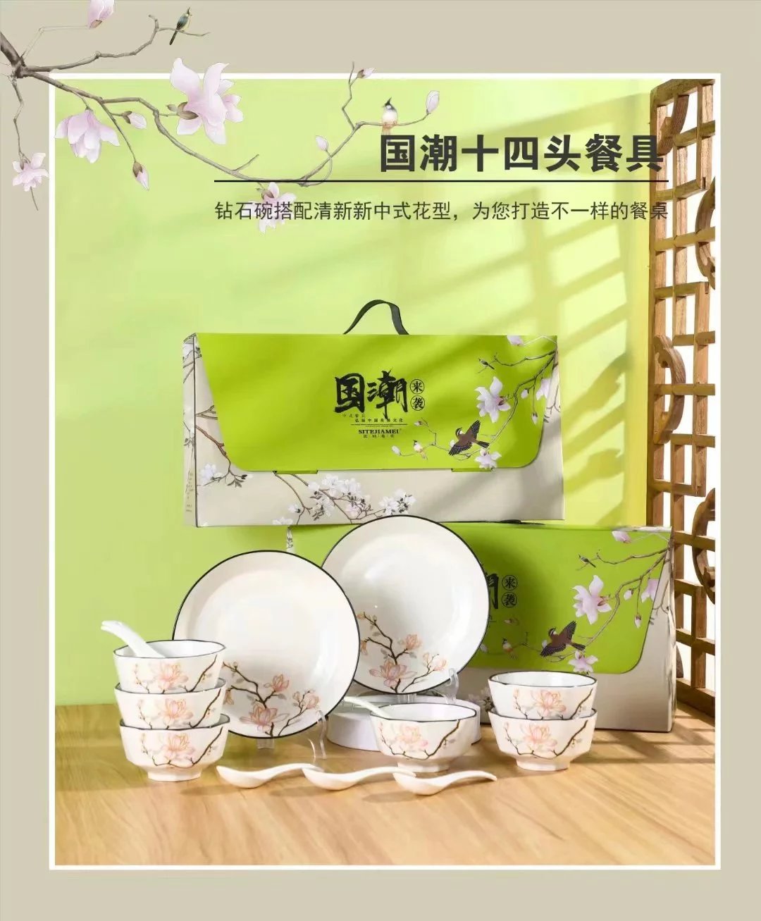 세라믹 그릇과 접시 가정용 세트 선물 그릇과 젓가락 세트 선물 상자 이벤트 선물 기념품 오프닝 선물 도매스토어 가기