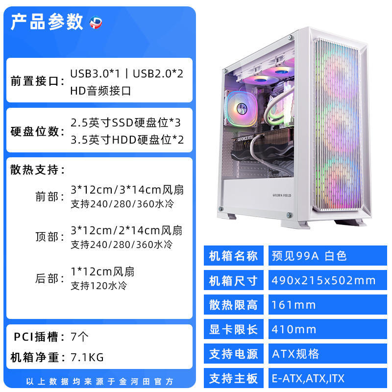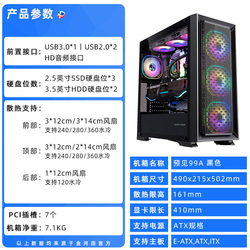Jinhetian은 듀얼 360 물 냉각/E-ATX 마더 보드/7 팬 위치/전체 측면 침투가있는 99A 컴퓨터 섀시를 예견합니다.스토어 가기