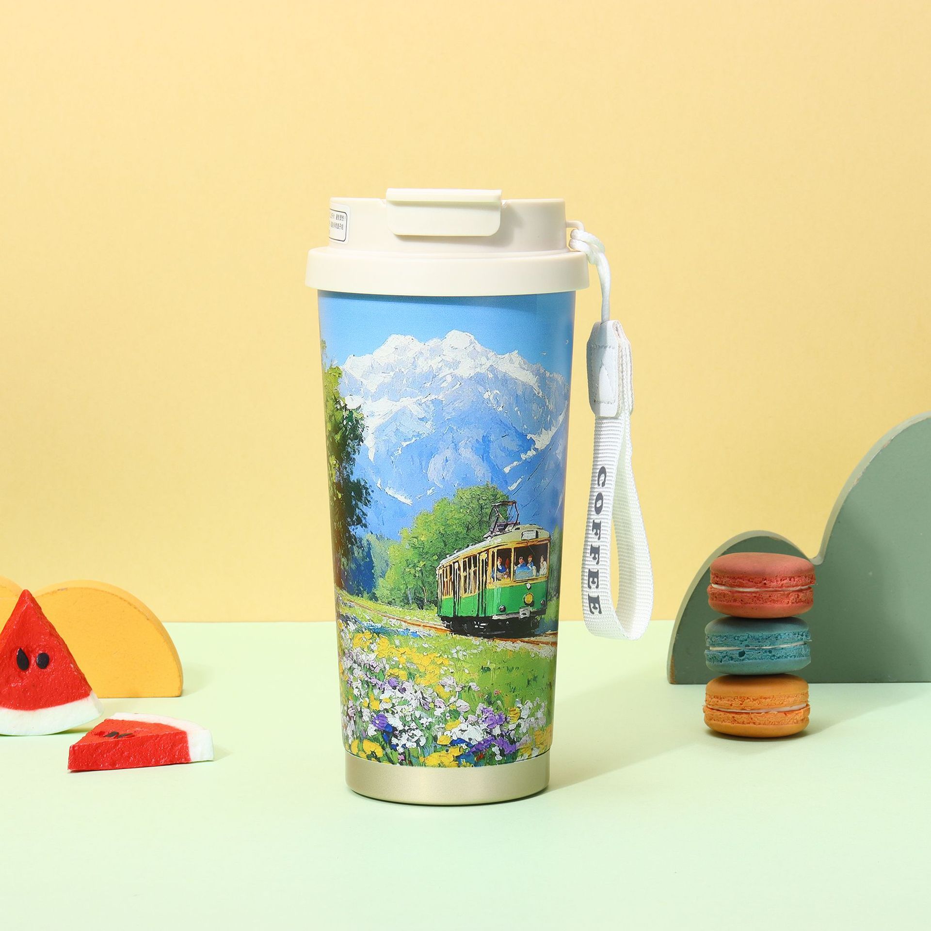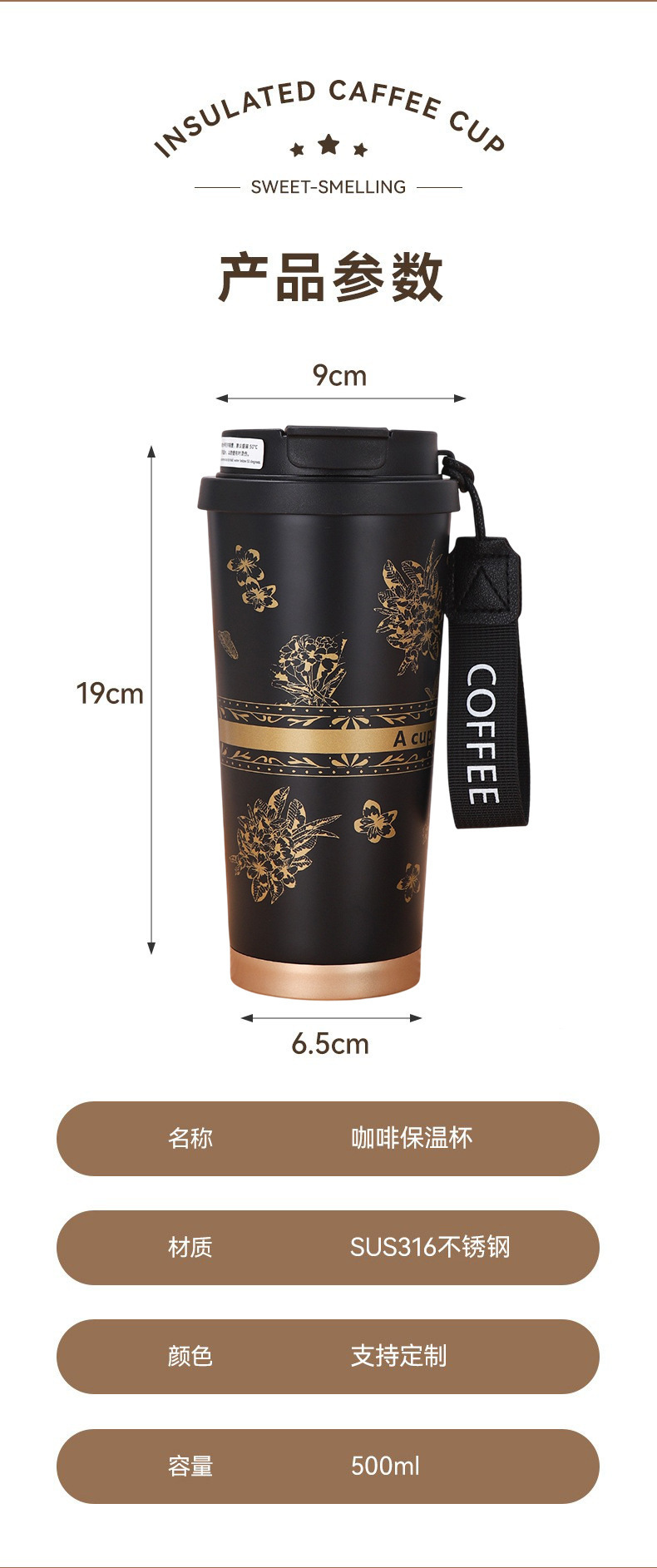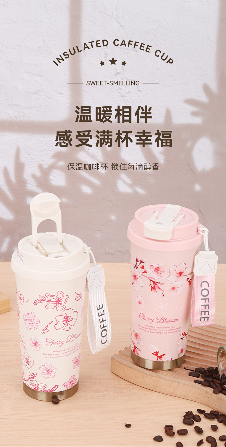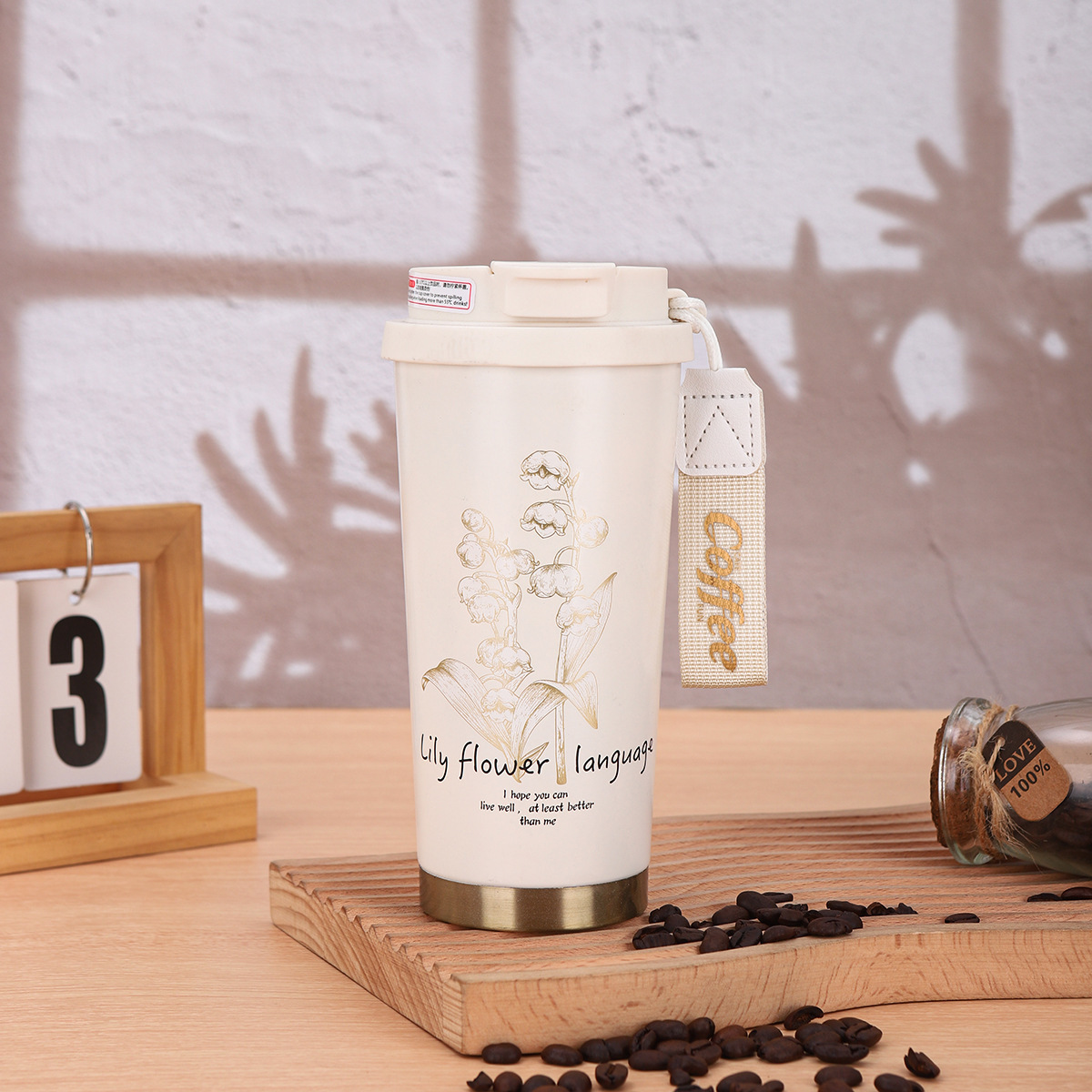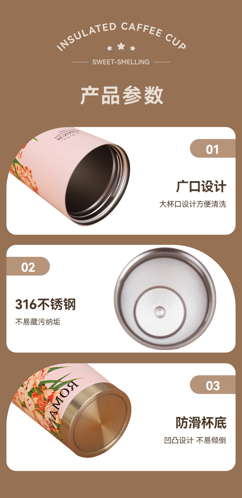 새로운 여름 정원 이중 음료 절연 커피 컵 진공 304 스테인레스 스틸 자동차 동반 컵 선물 컵 도매