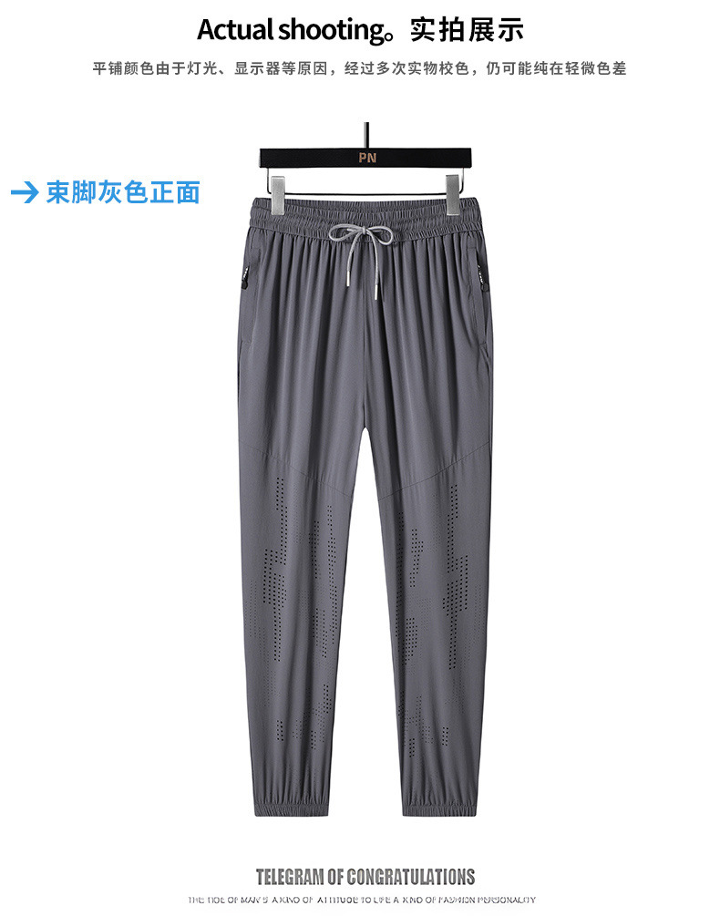 아이스 실크 바지 남자 여름 얇은 2024 새로운 패션 브랜드 봄과 가을 탄성 빠른 건조 스포츠 캐주얼 바지