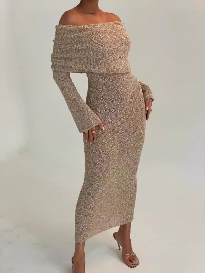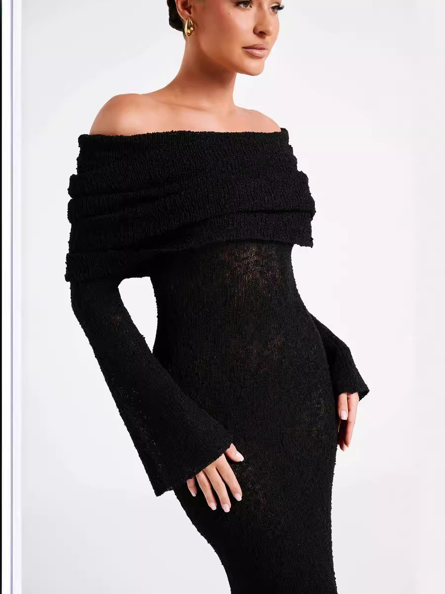 유럽과 미국 스타일의 해변 휴가용 섹시 롱 드레스, 니트 레이스 오프숄더 롱 원피스, 여성용