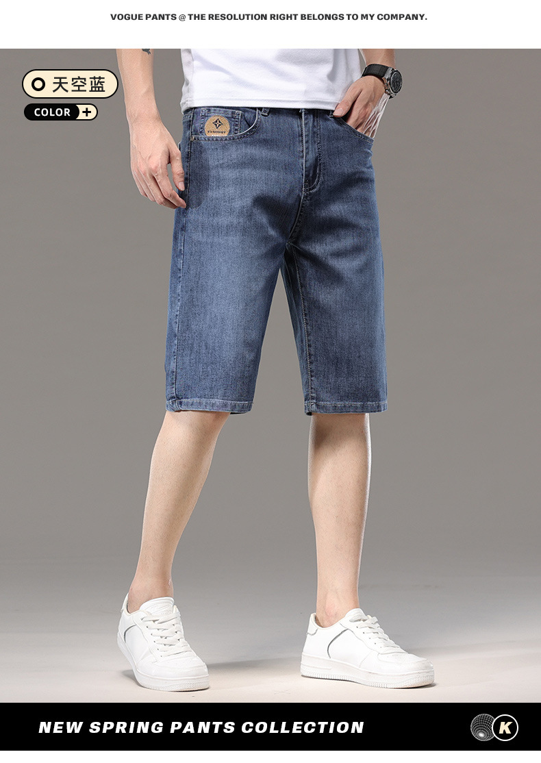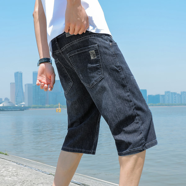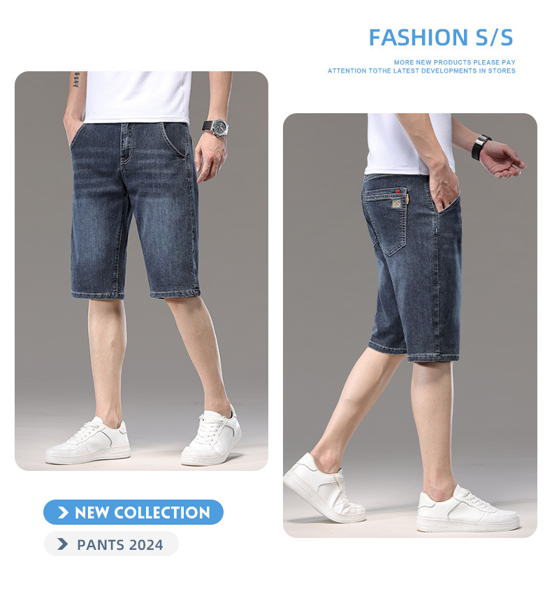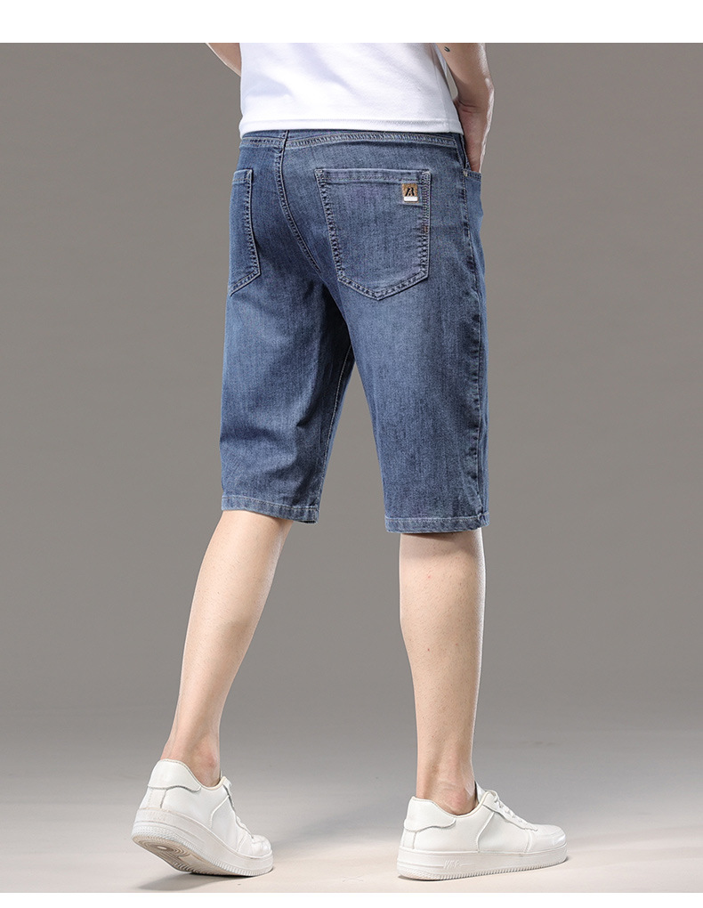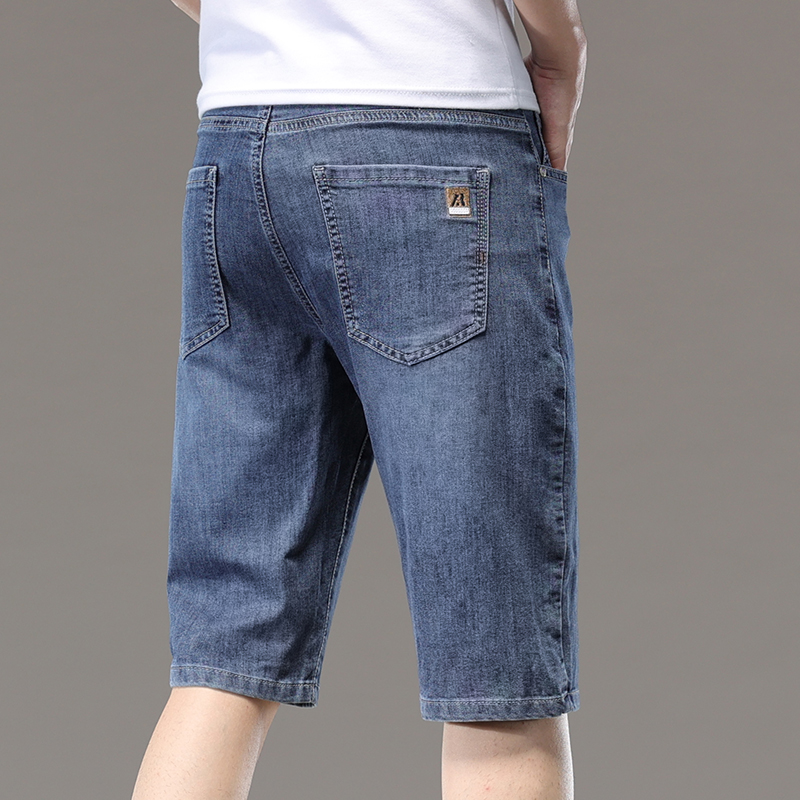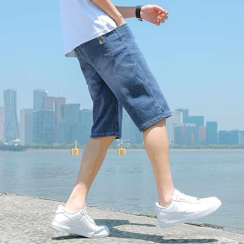 광저우 신탕 아이스 실크 데님 반바지 남자 여름 얇은 5 점 바지 외부 착용 남자 느슨한 7 점 바지스토어 가기