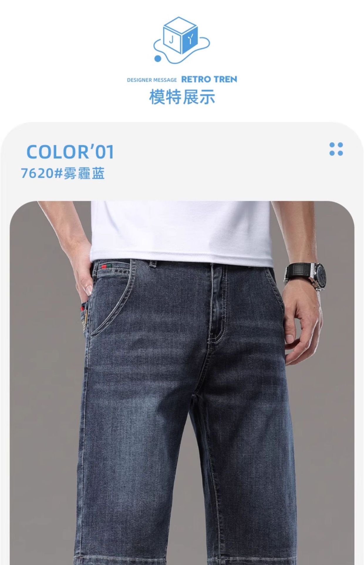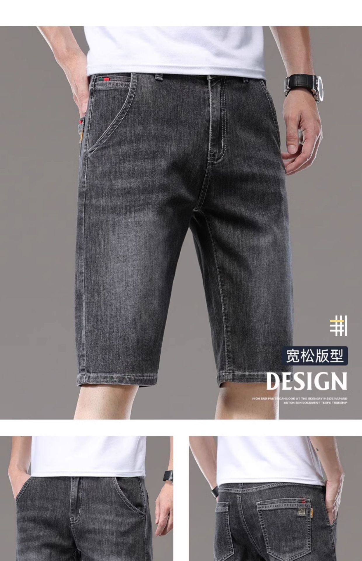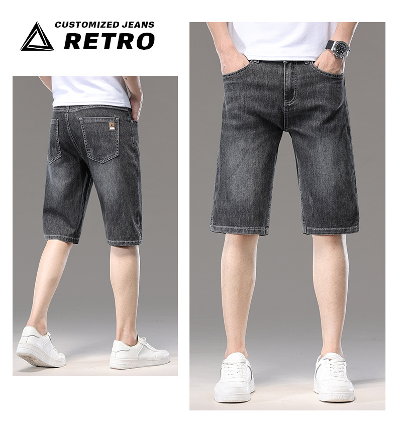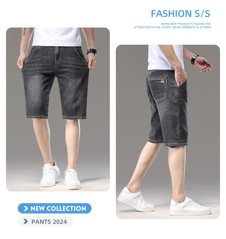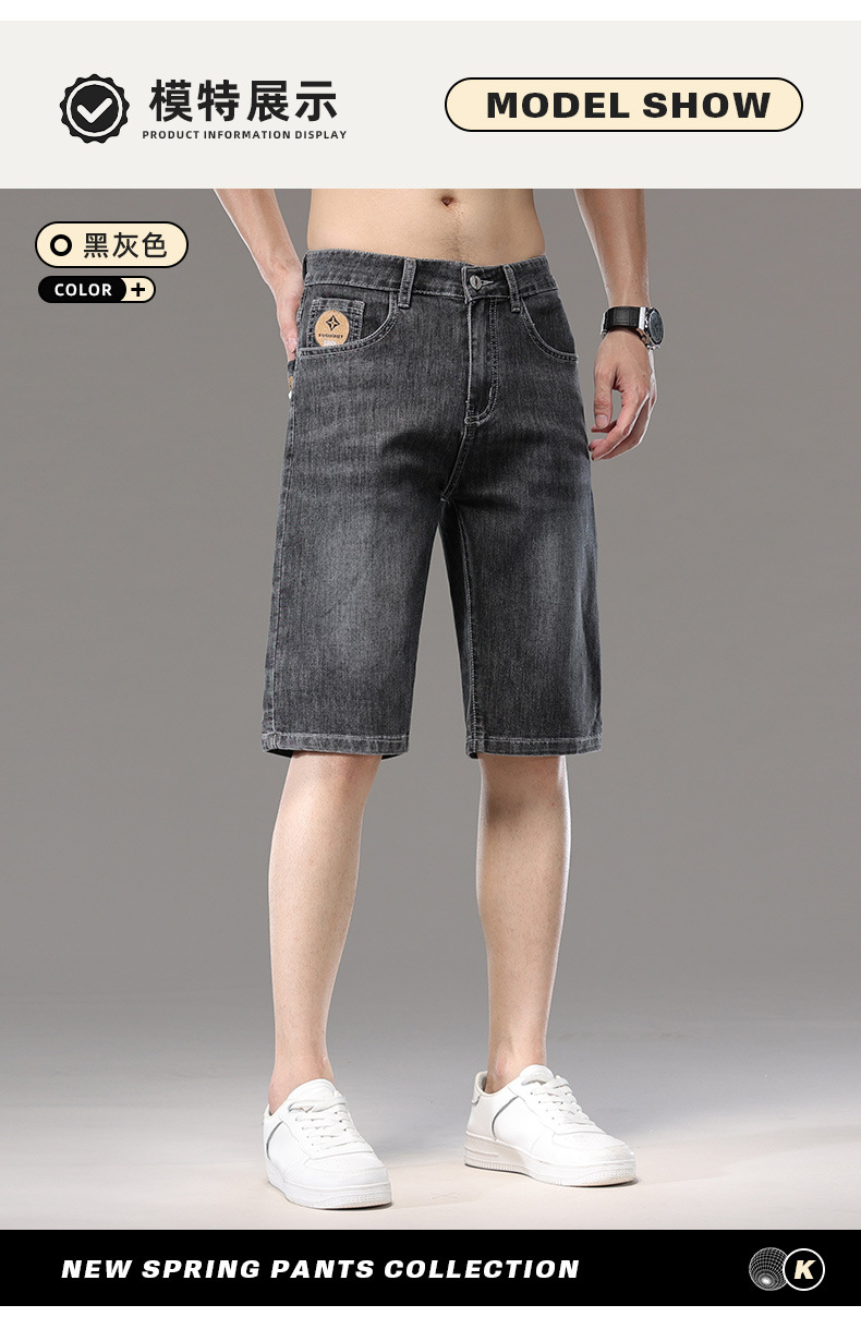 광저우 신탕 아이스 실크 데님 반바지 남자 여름 얇은 5 점 바지 외부 착용 남자 느슨한 7 점 바지스토어 가기