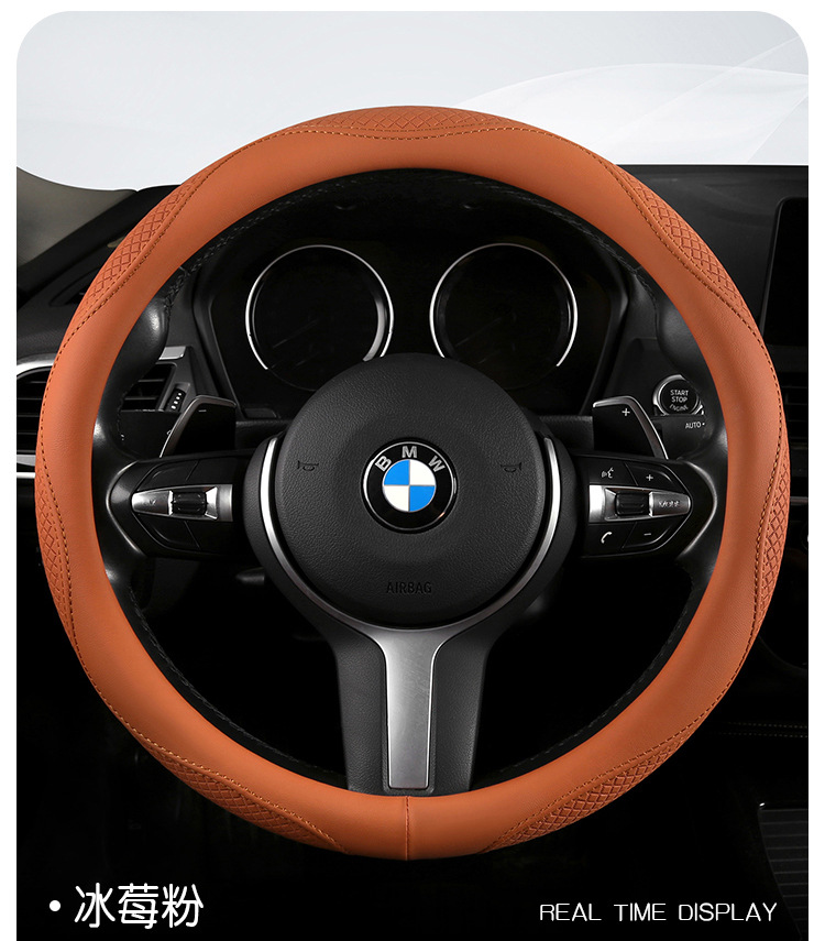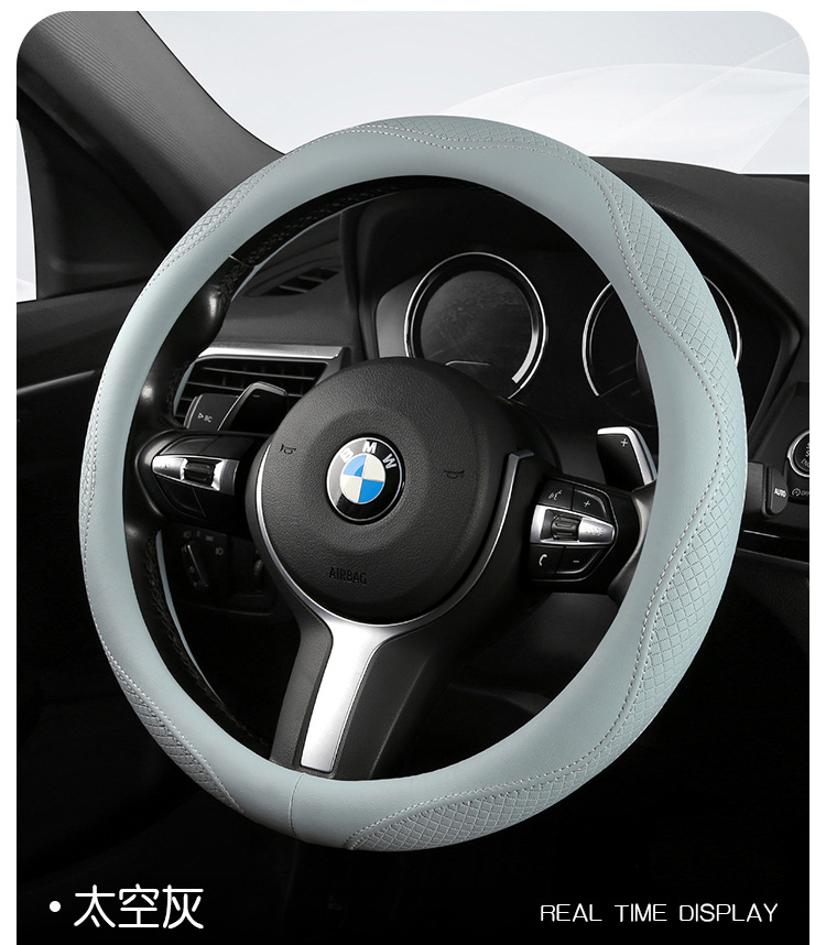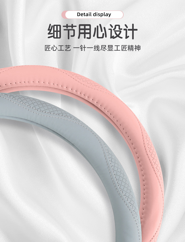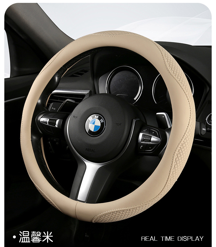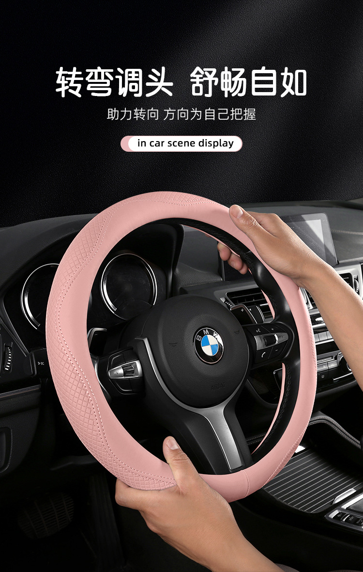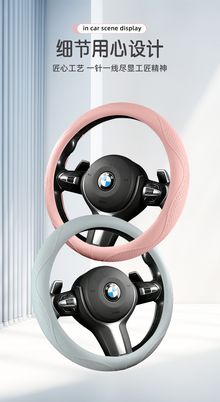 Morandi 컬러 스티어링 휠 커버 가죽은 Euler Wuling Tesla 자동차 핸들 커버 사계절에 적합합니다.스토어 가기