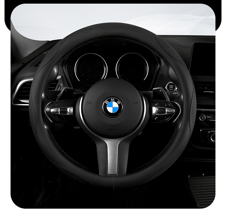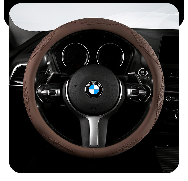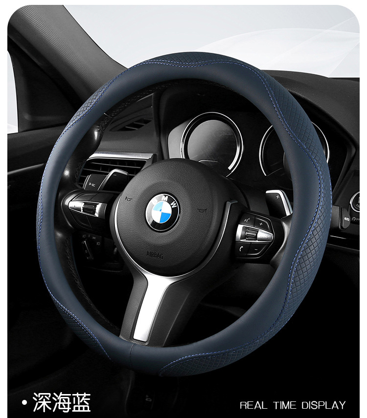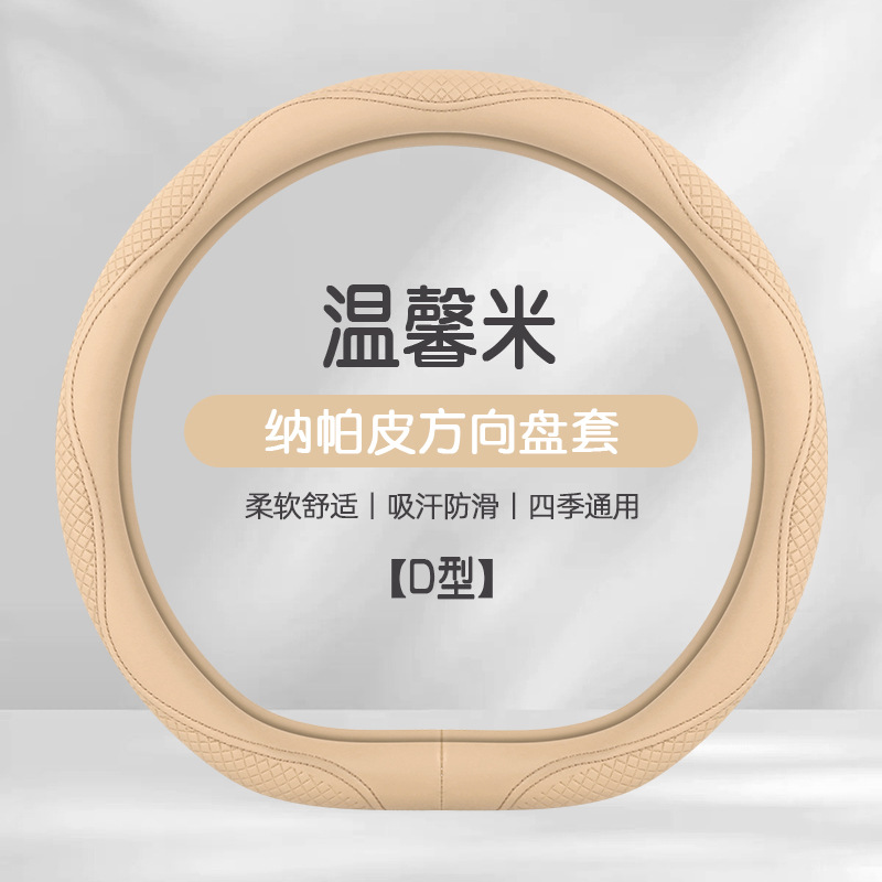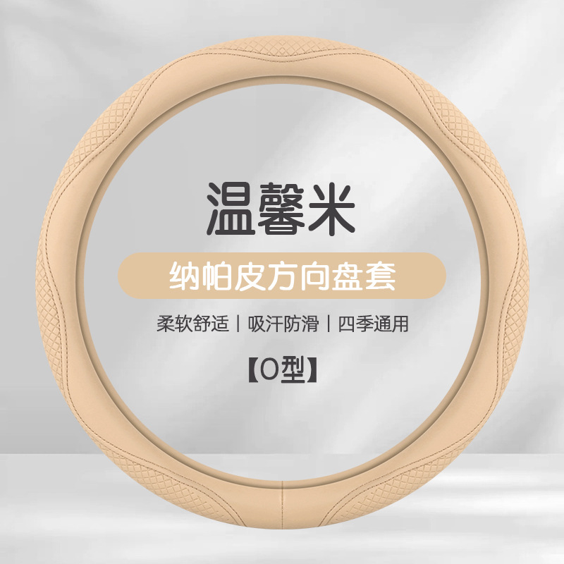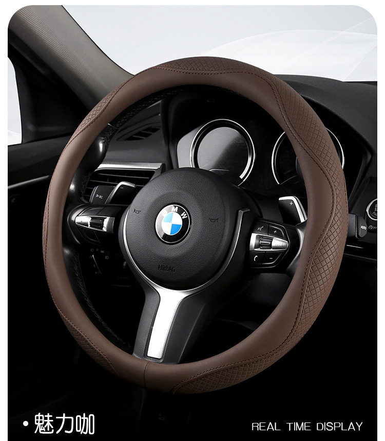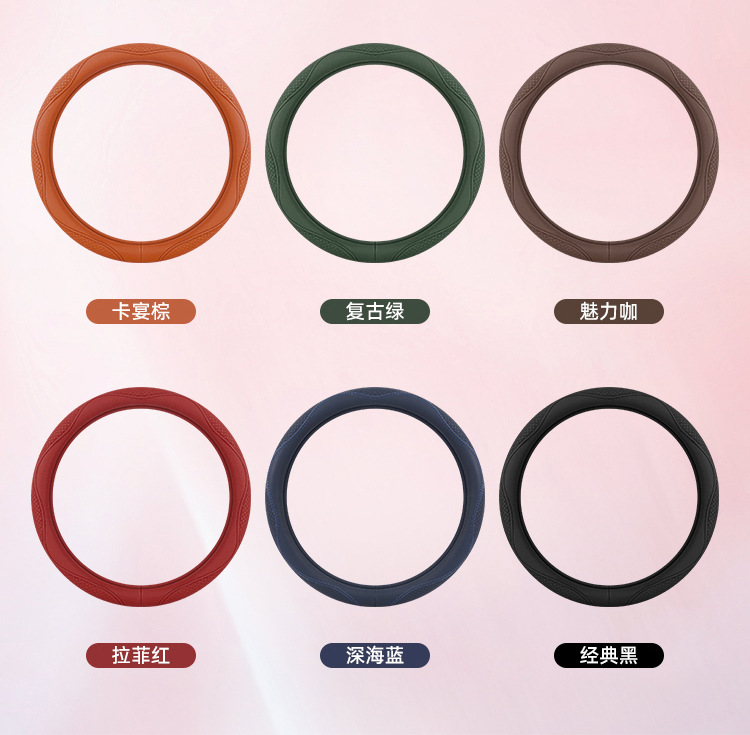 Morandi 컬러 스티어링 휠 커버 가죽은 Euler Wuling Tesla 자동차 핸들 커버 사계절에 적합합니다.스토어 가기