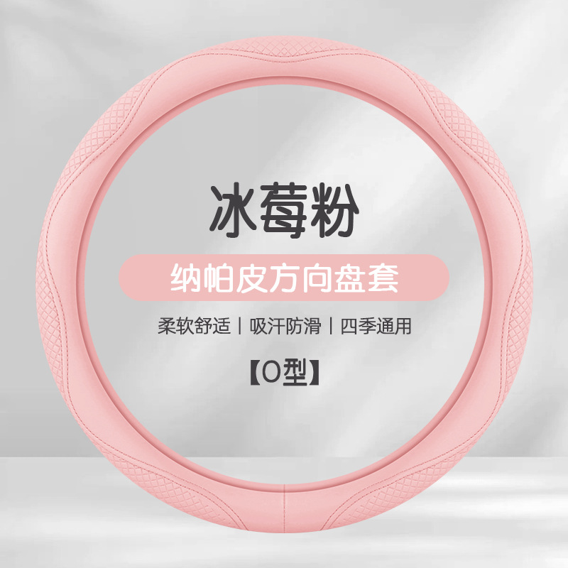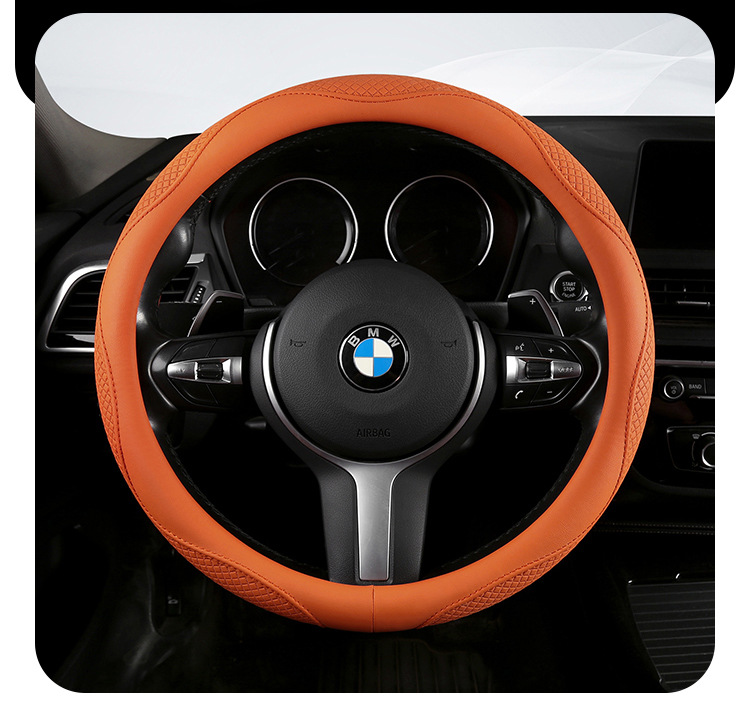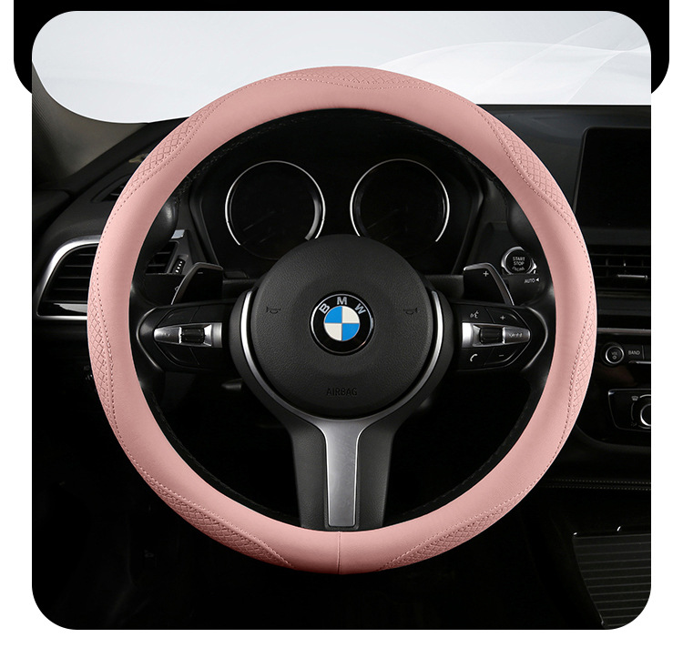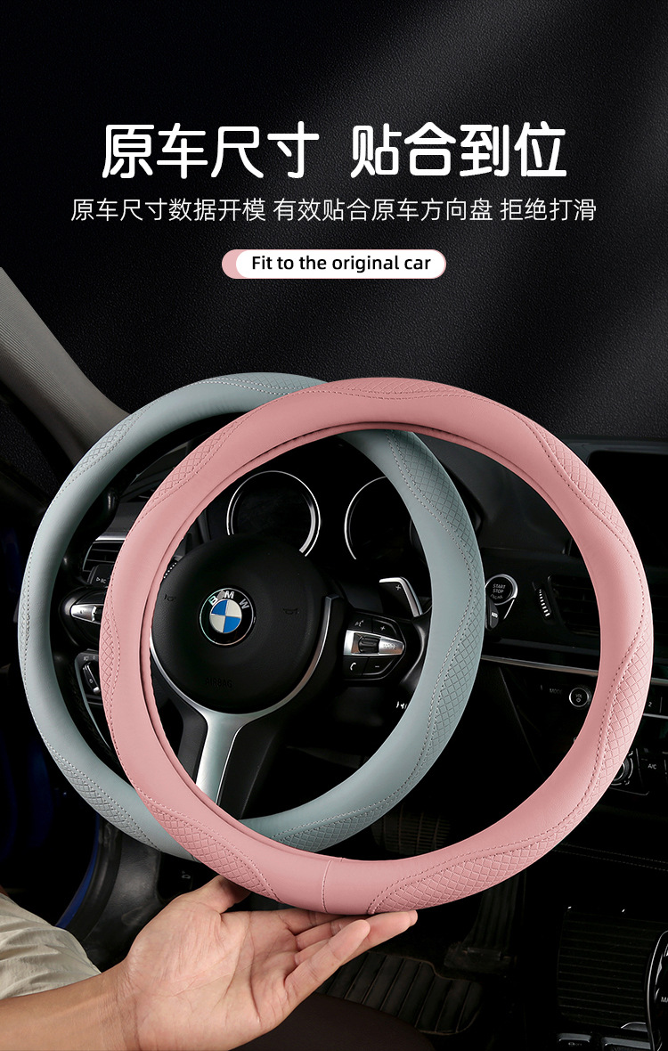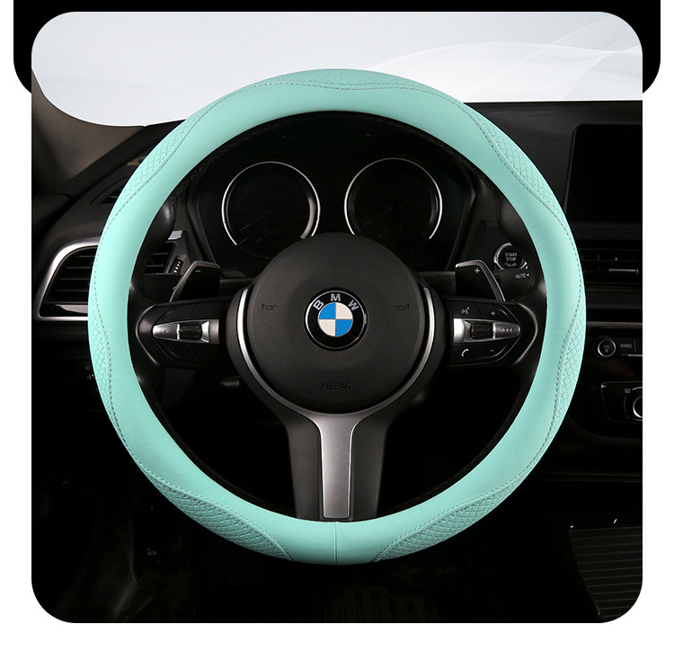 Morandi 컬러 스티어링 휠 커버 가죽은 Euler Wuling Tesla 자동차 핸들 커버 사계절에 적합합니다.