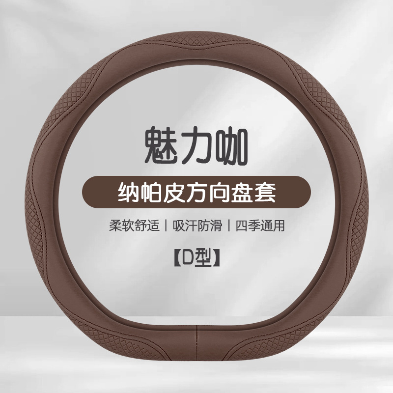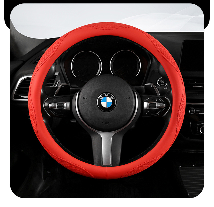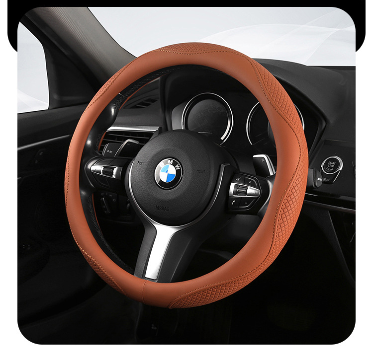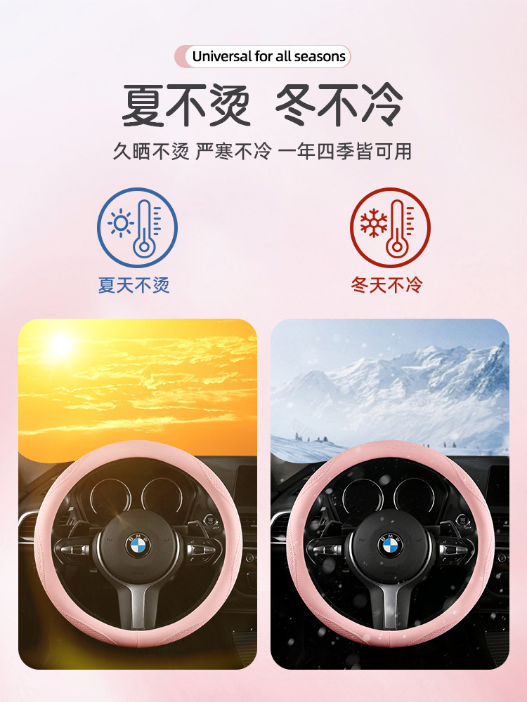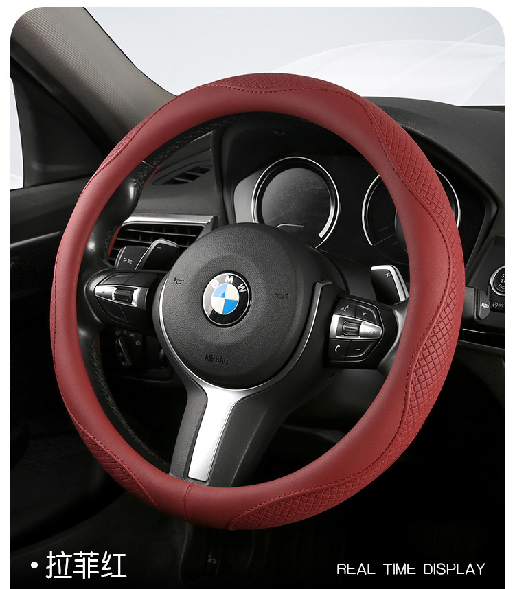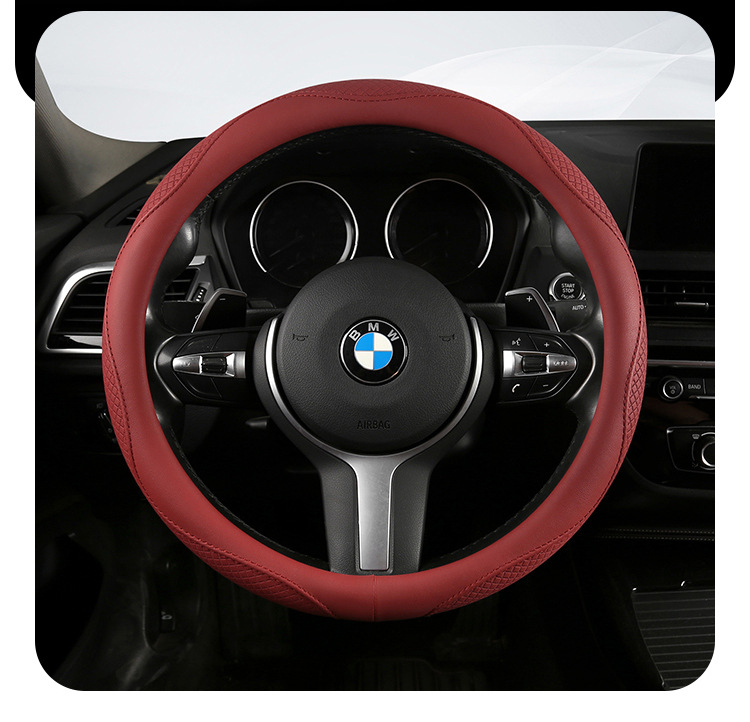 Morandi 컬러 스티어링 휠 커버 가죽은 Euler Wuling Tesla 자동차 핸들 커버 사계절에 적합합니다.