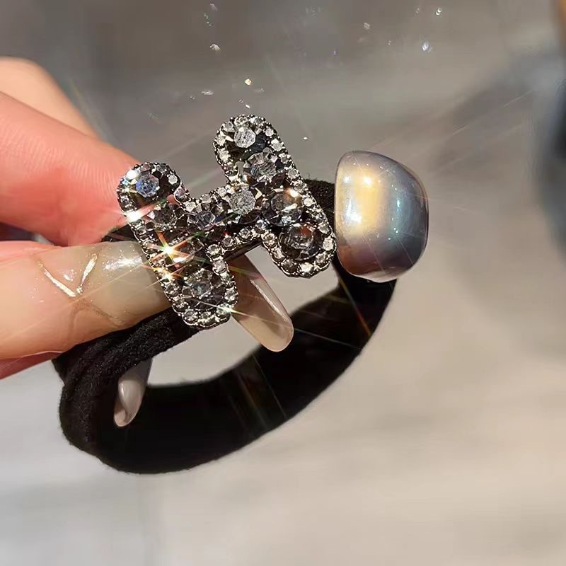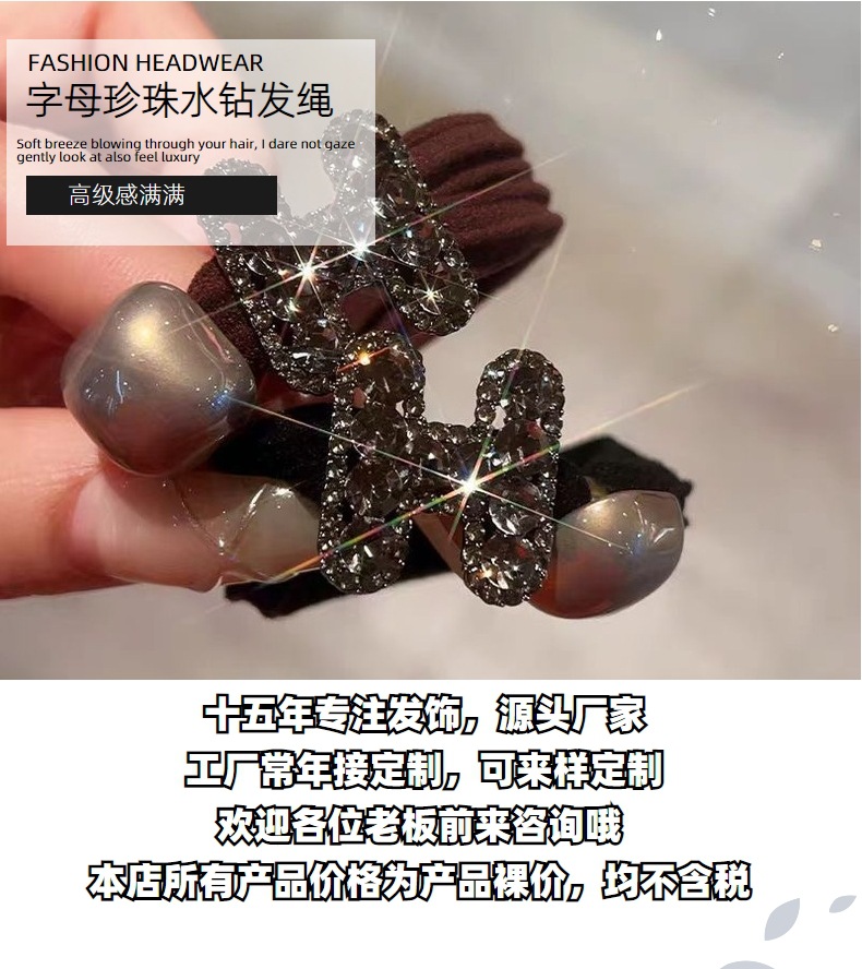 한국식 고급 편지 진주 라인스톤 헤어 로프 간단한 우아한 고탄성 복숭아 꼬리 공 헤어 링 헤드웨어