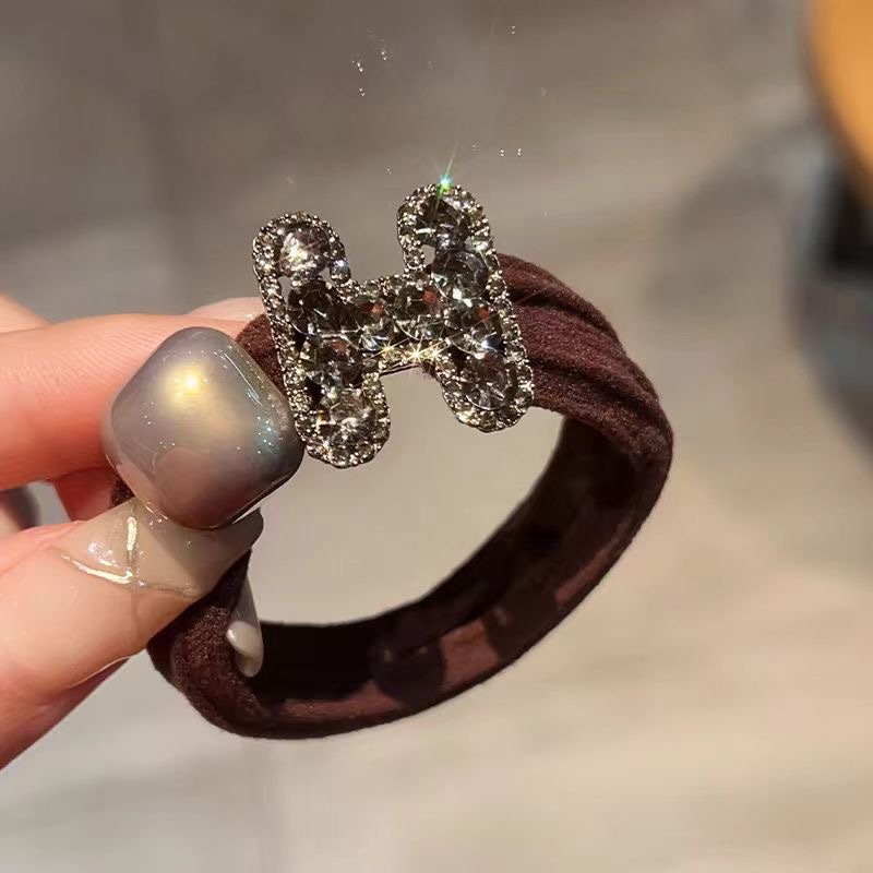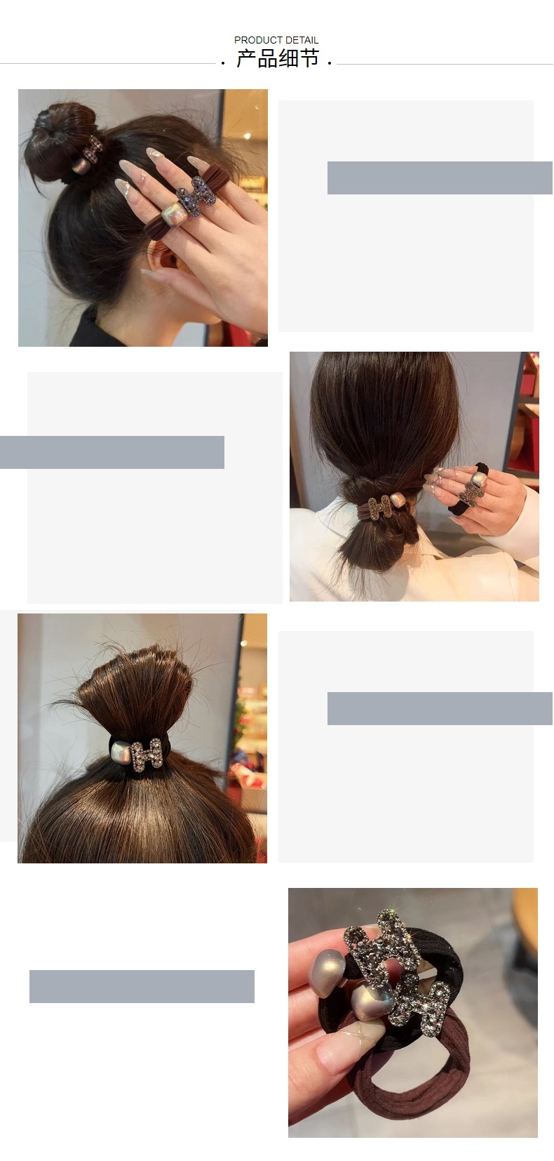 한국식 고급 편지 진주 라인스톤 헤어 로프 간단한 우아한 고탄성 복숭아 꼬리 공 헤어 링 헤드웨어스토어 가기