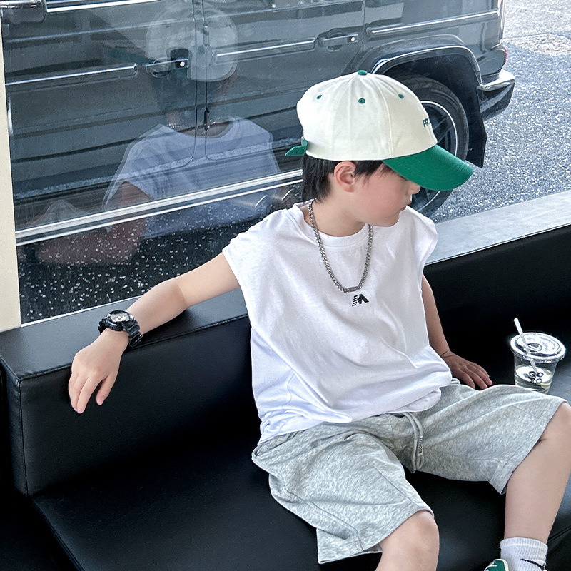 호주지리 아동복 민소매 티셔츠 조끼 팬더 원원 여름 남아용 조끼 A급 순면 도매