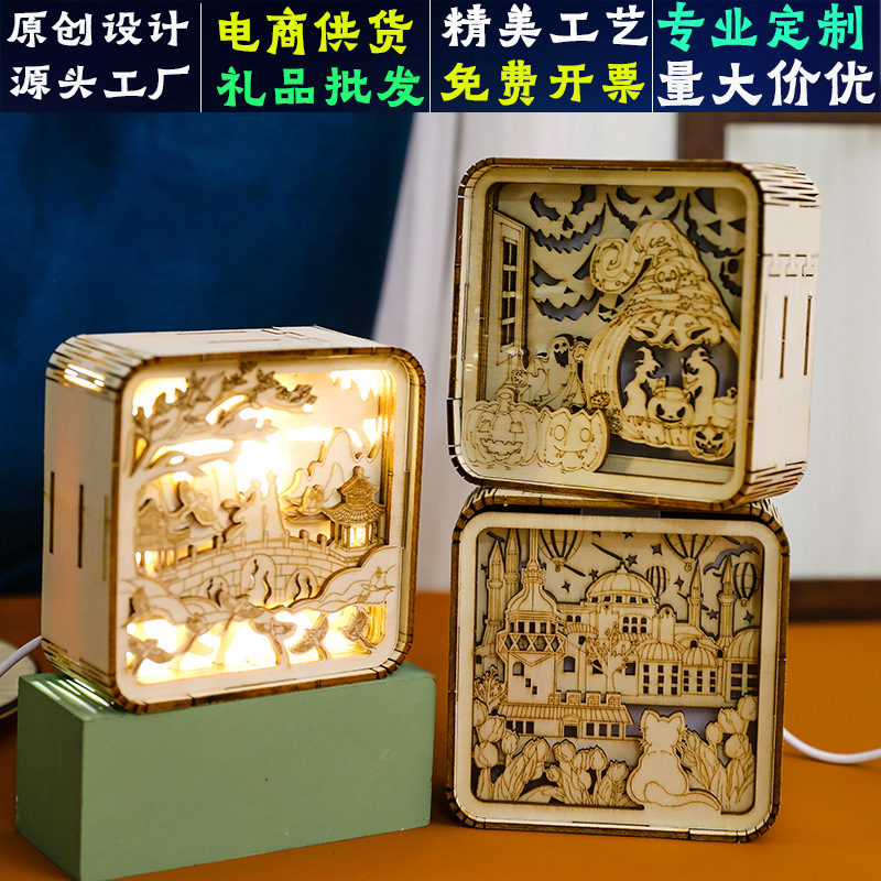 창조적 인 선물 홈 장식 데스크탑 장식 관광 기념 선물 침실 침실 분위기 밤 빛 나무 조각 램프스토어 가기