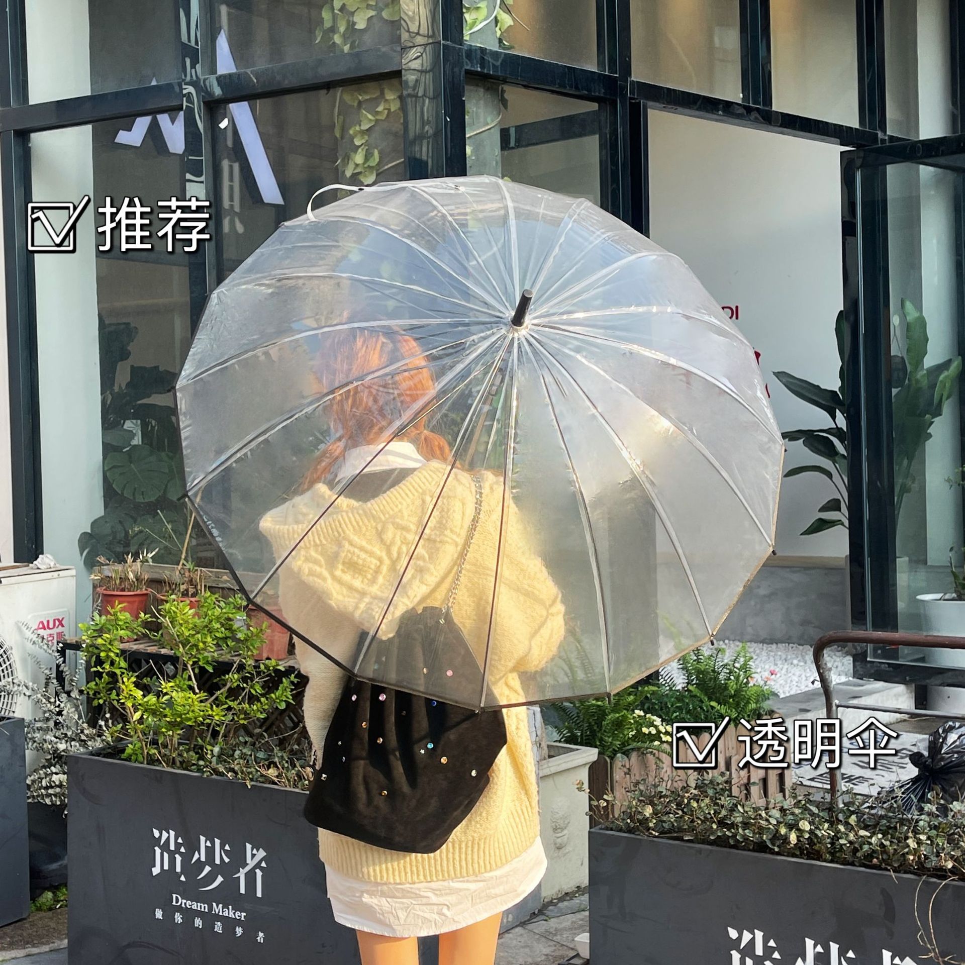 • 16 가닥 검은 가장자리 긴 손잡이 우산 두꺼운 우산 표면