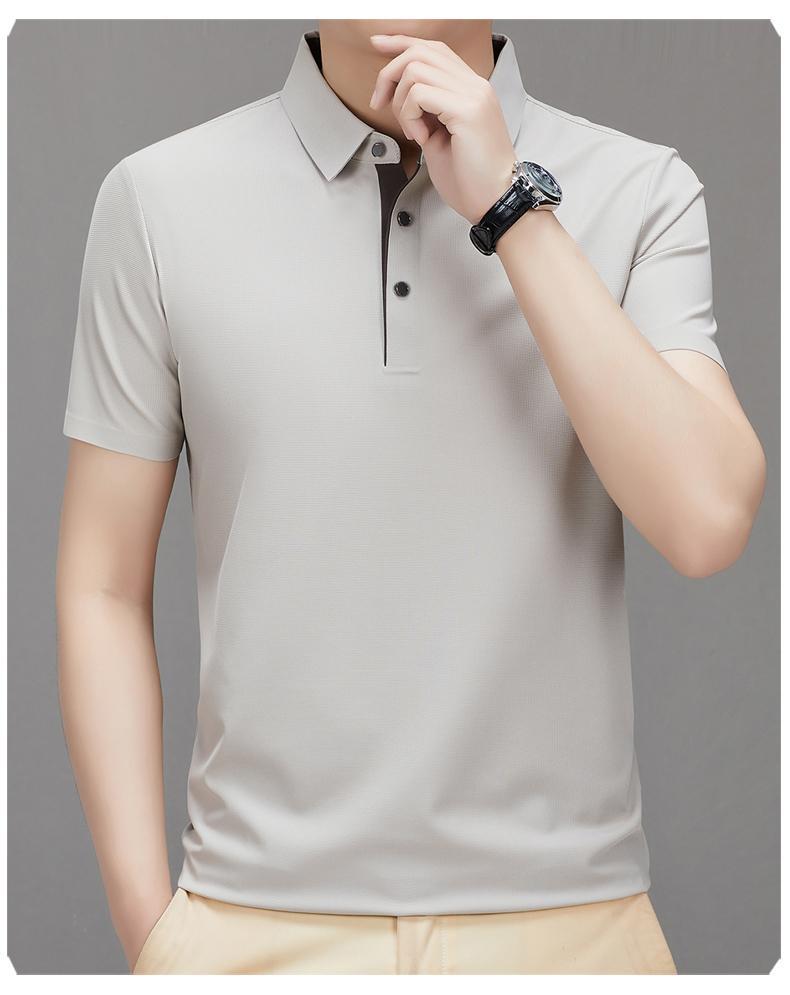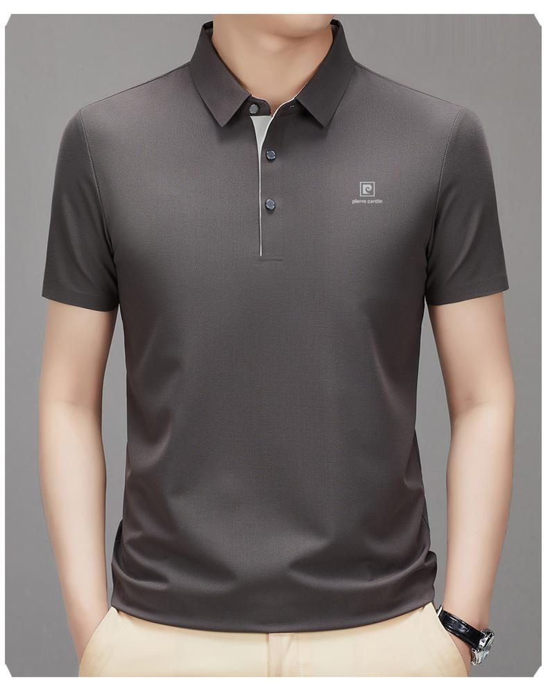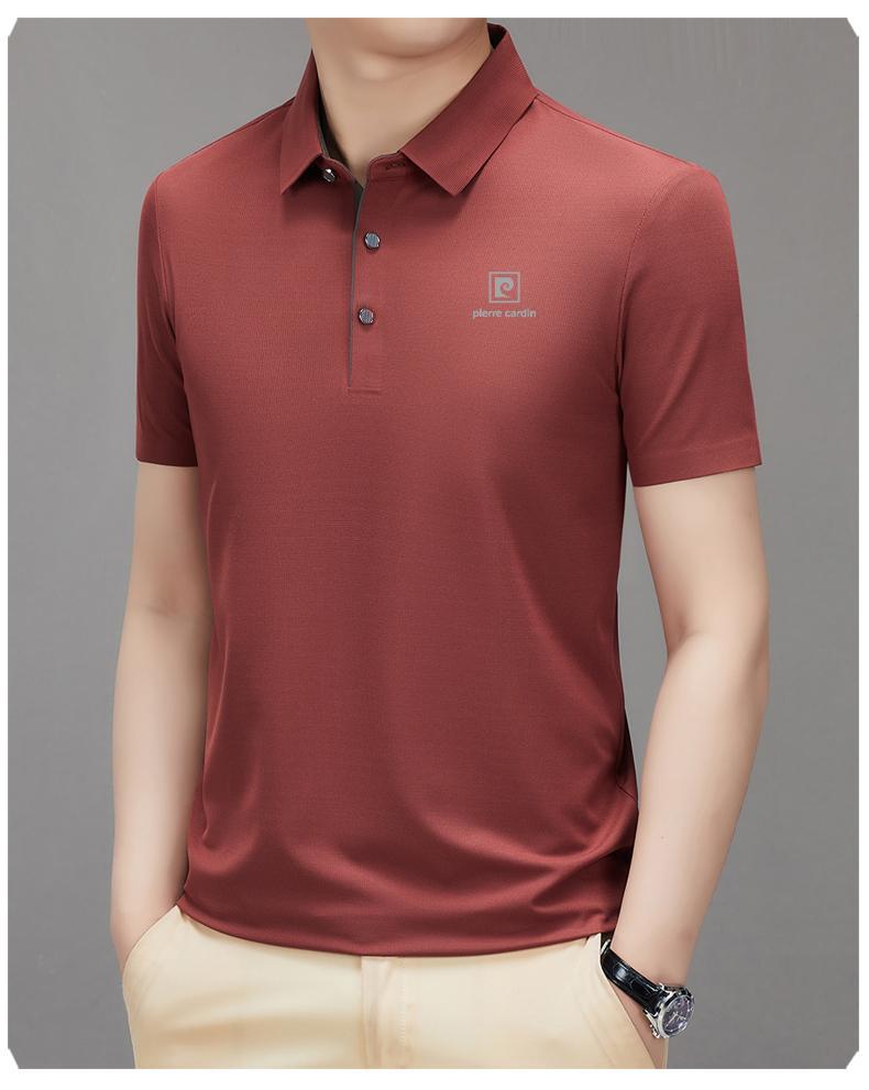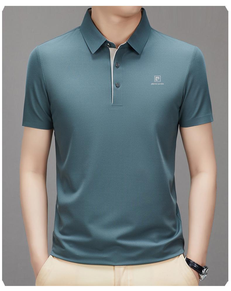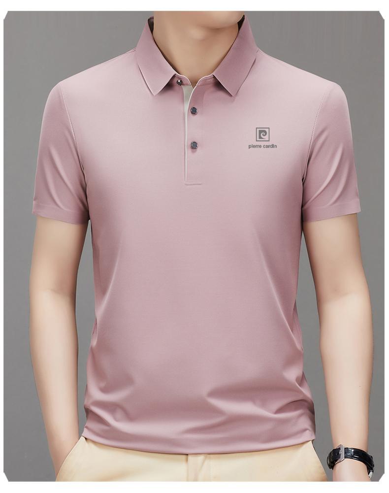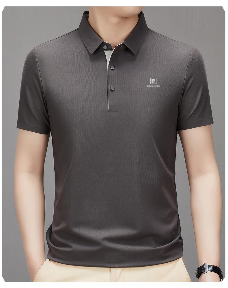 피에르 카딘 2024 새로운 남성 반팔 티셔츠 뽕나무 실크 추적없는 POLO 셔츠 중년 아빠 얇은스토어 가기