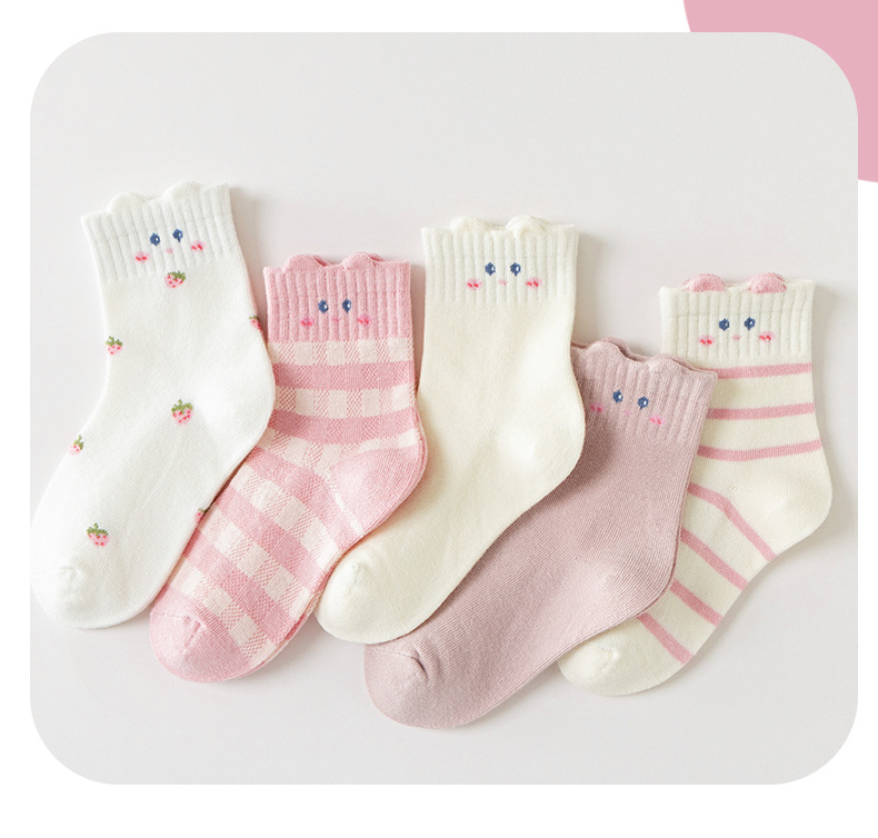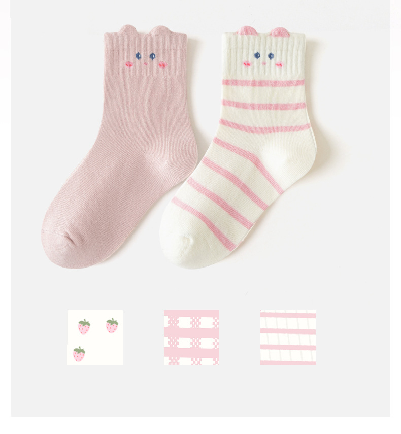 가을과 겨울 어린이 양말 만화 달콤한 튜브 양말 핑크 귀여운 입체 소녀 양말 봄과 가을 소녀 면화 양말