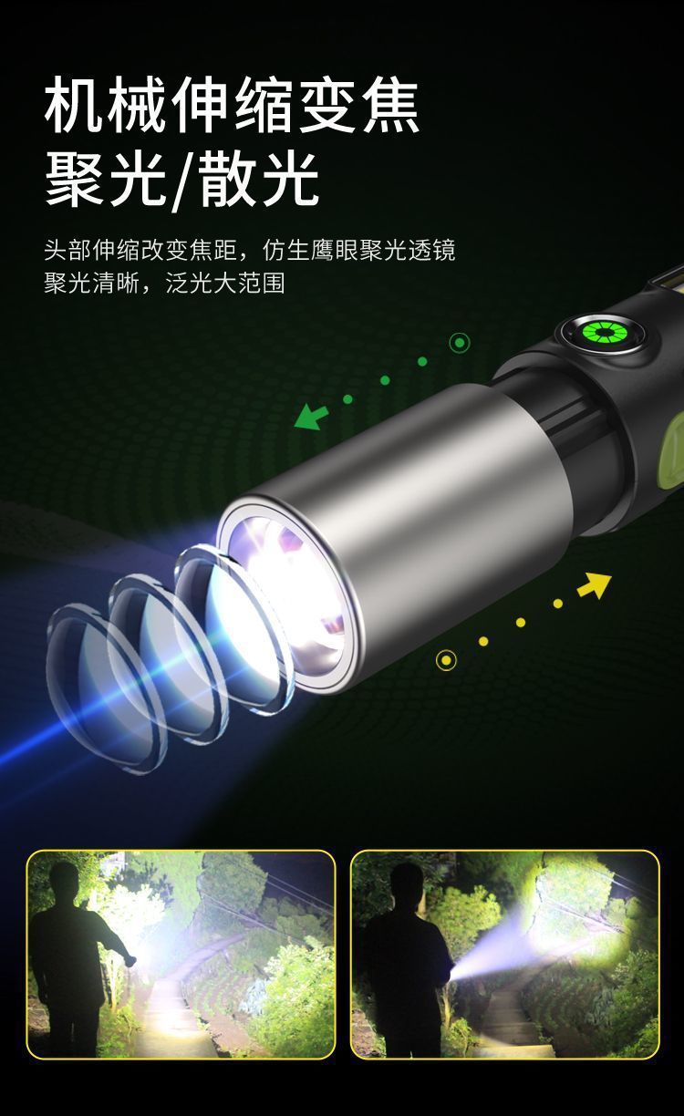 흰색 레이저 손전등 야외 다기능 조명 캠핑 빛 슈퍼 밝은 장거리 손전등 초점 led 빛스토어 가기