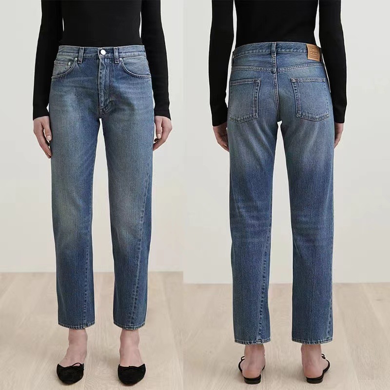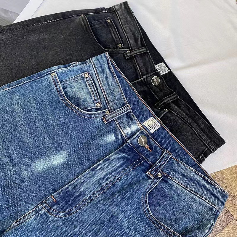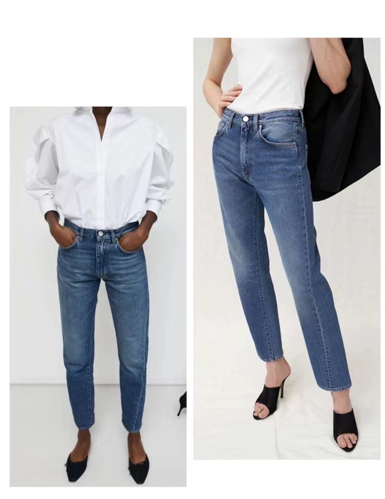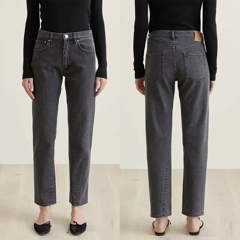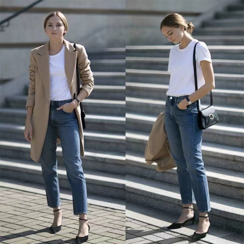 유럽과 미국의 Liu Wen 같은 스타일 높은 허리 청바지 여성용 연기 튜브 바지 스트레이트 슬리밍 자른 바지 스웨덴 작은 스타일스토어 가기