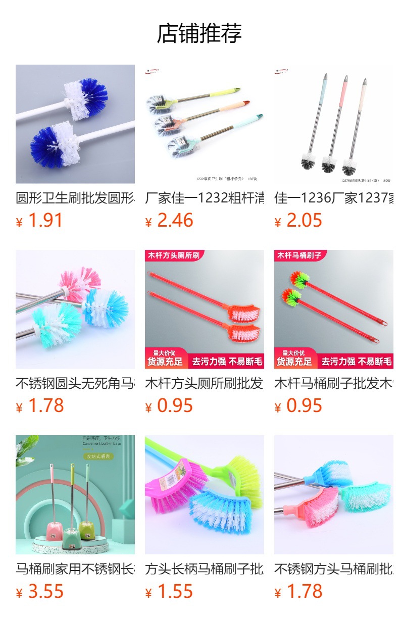 Jiayi 1298 알루미늄 막대 라운드 헤드 1299 스퀘어 헤드 위생 브러시 Linyi 매일 사용 화장실 청소 화장실 브러시스토어 가기