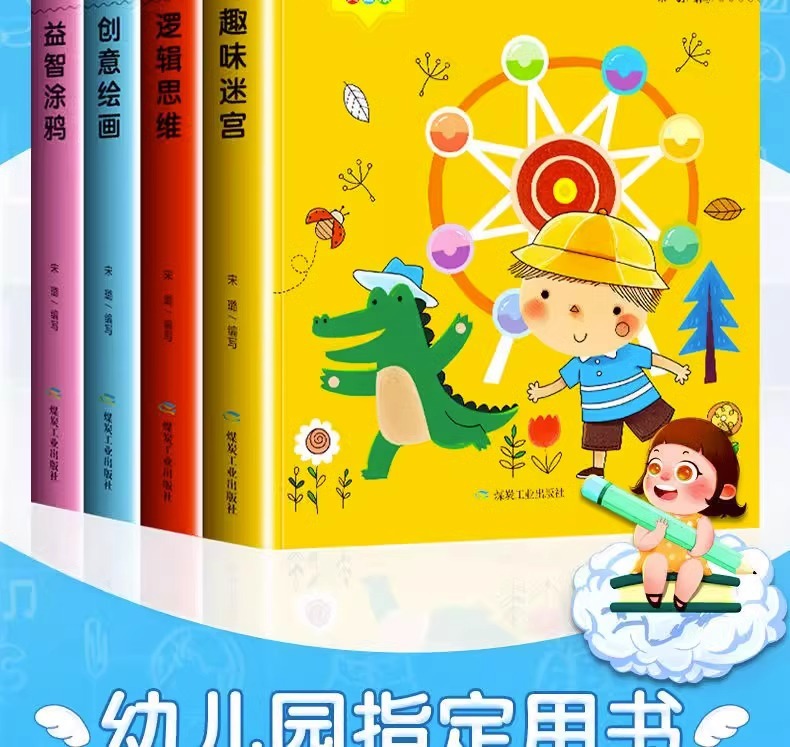 초등학교 이전의 기본 기술 교육은 어린이 논리적 사고 훈련 퍼즐 낙서 게임 책의 4 권의 모든 책과 관련이 있습니다.