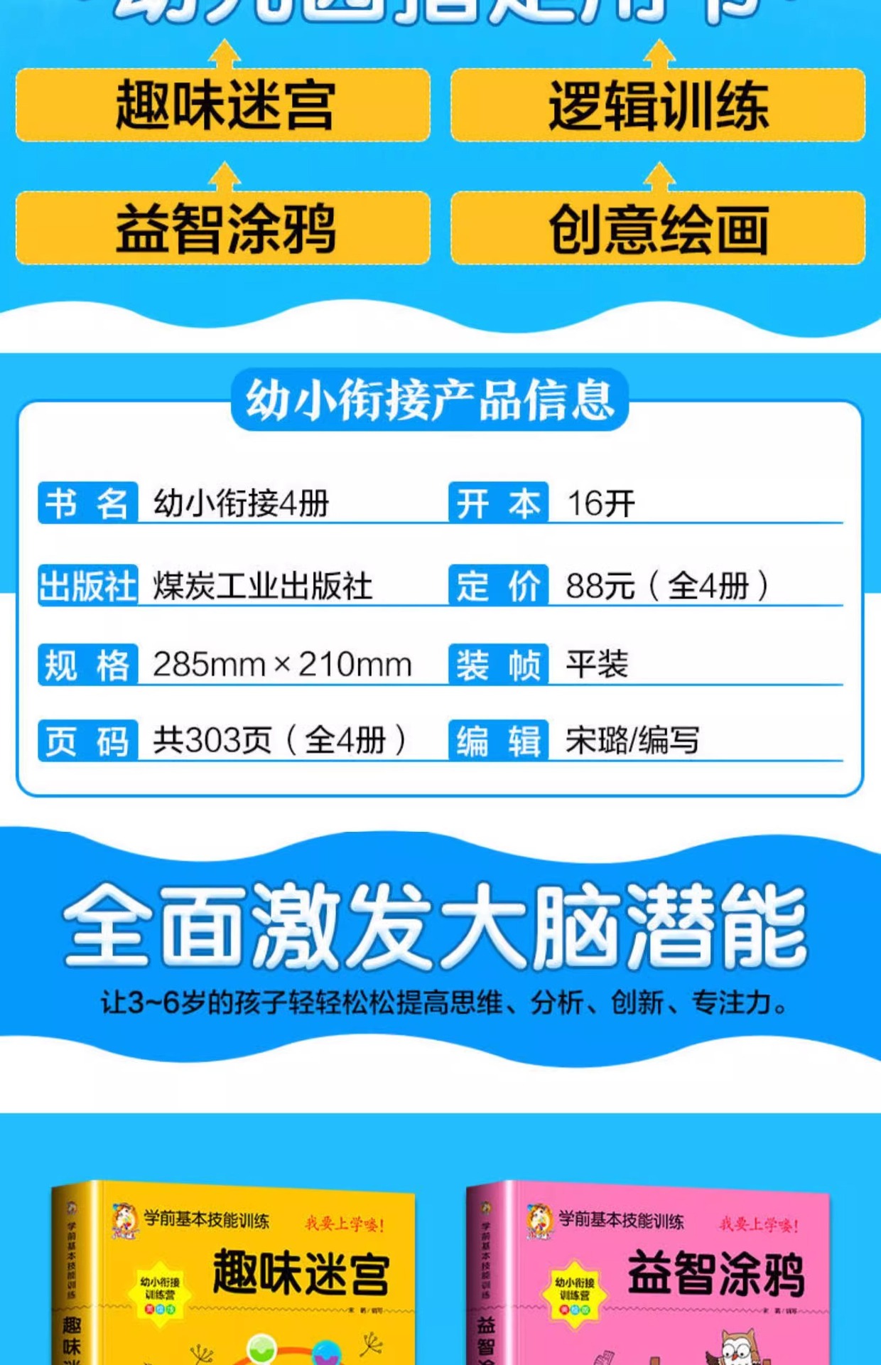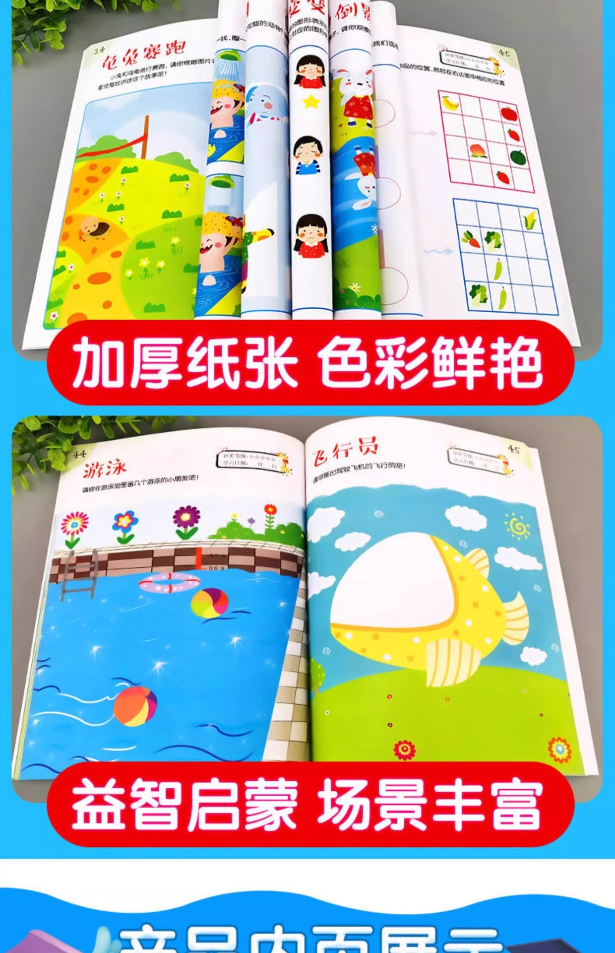 초등학교 이전의 기본 기술 교육은 어린이 논리적 사고 훈련 퍼즐 낙서 게임 책의 4 권의 모든 책과 관련이 있습니다.스토어 가기