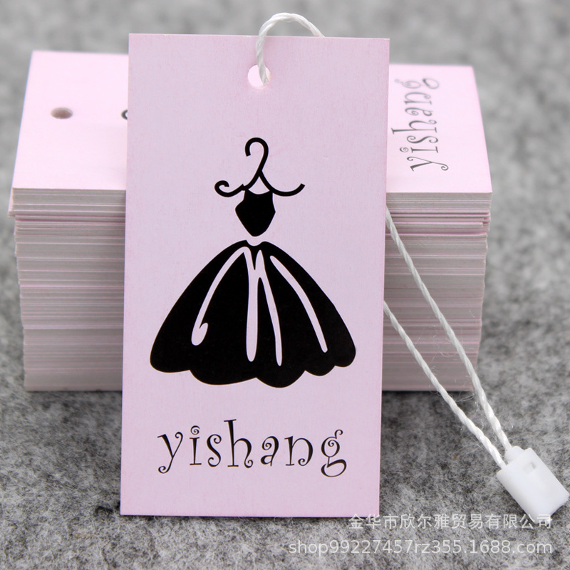 여성 범용 태그 재고 스커트 코팅 종이 가격 태그 상표 태그 디자인 및 생산스토어 가기