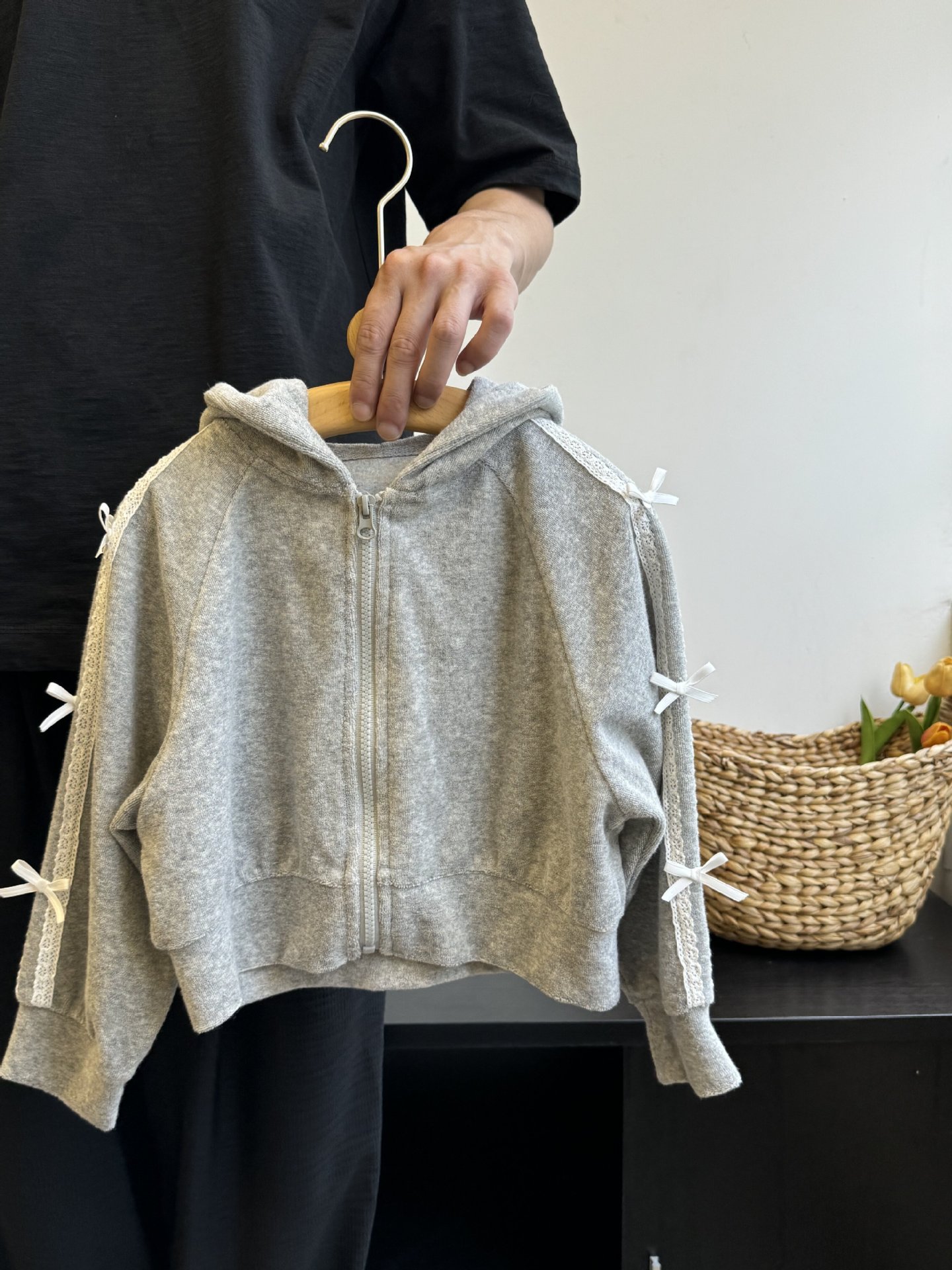 회색 소녀 정장 가을 시즌 한국 스타일 탑 캐주얼 아동 후드 카디건 재킷 서양식 벨 바닥 바지