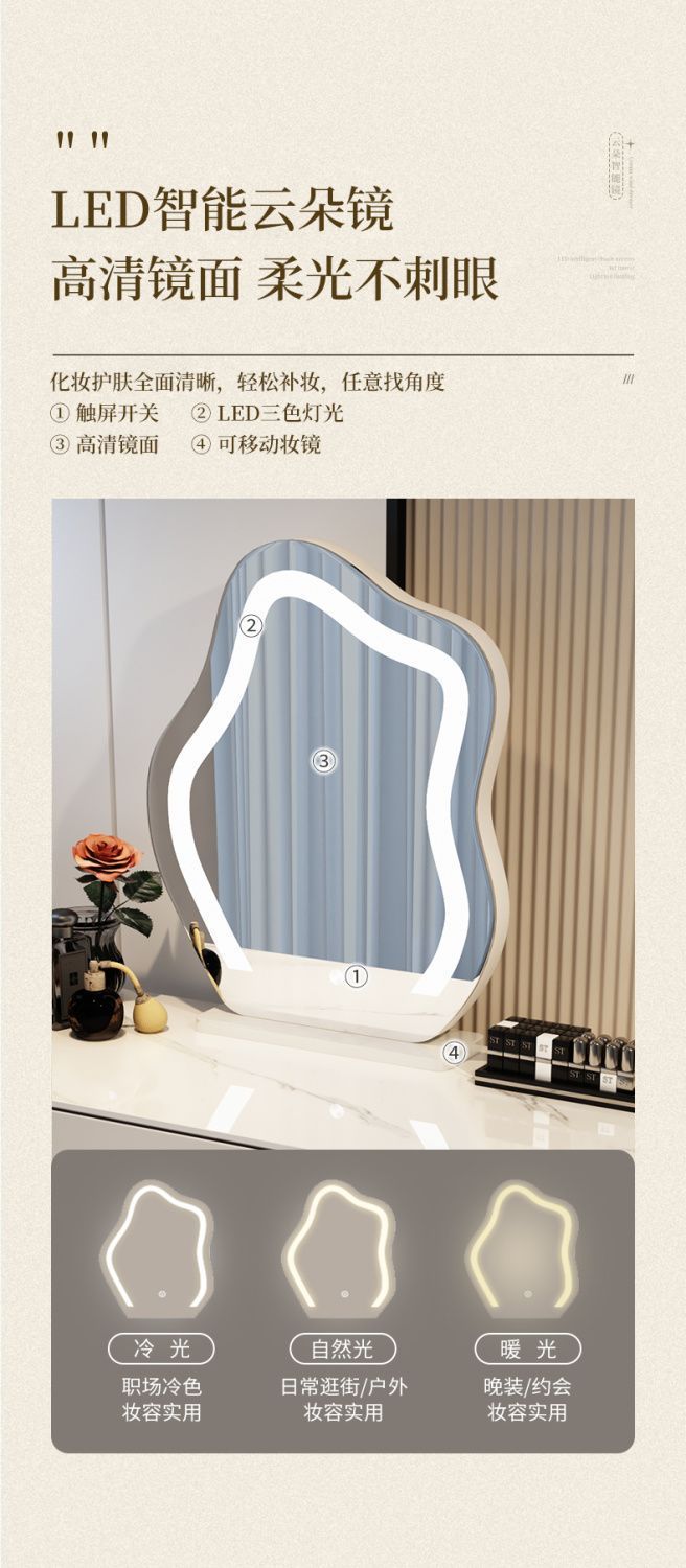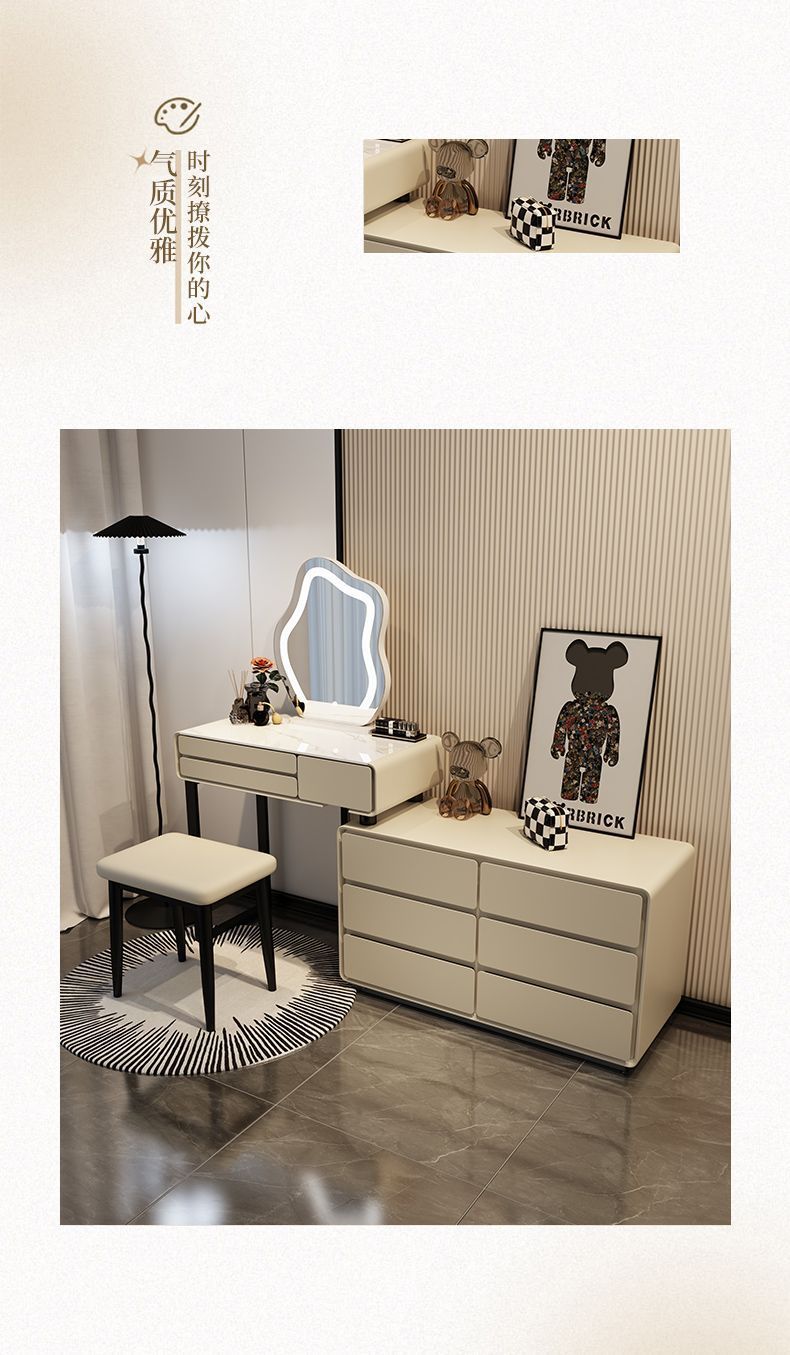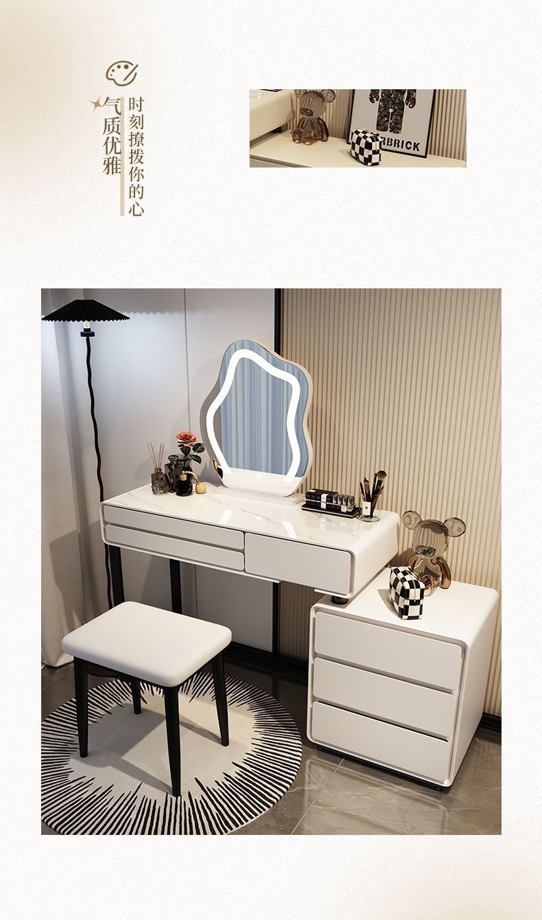 • 800 테이블 화이트 + 거울 + 사이드 캐비닛 + 흑백 팔각형 책상