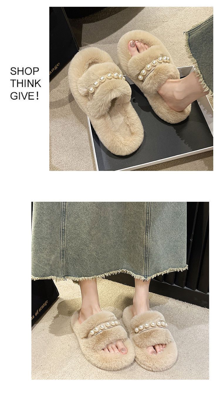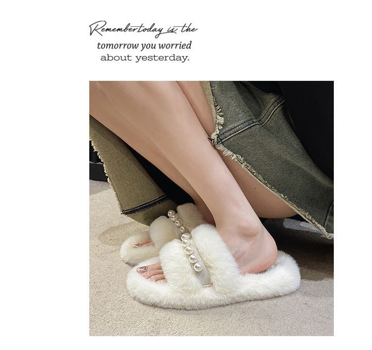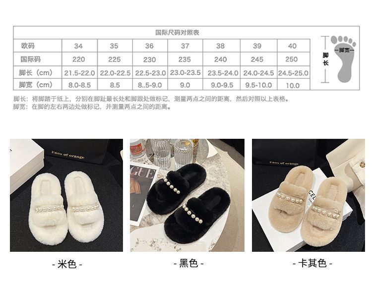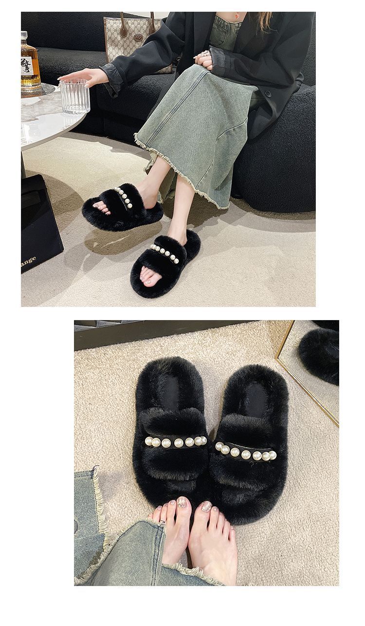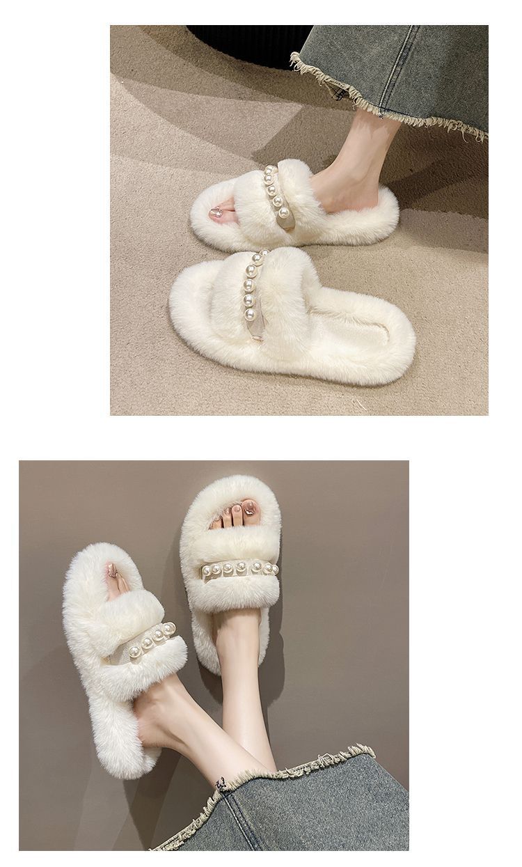 마오 마오 슬리퍼 여성 의류 2023 새로운 한국 스타일 Ins 유행 신발 가을과 겨울 진주 두꺼운 단독 면 슬리퍼 봄과 여름