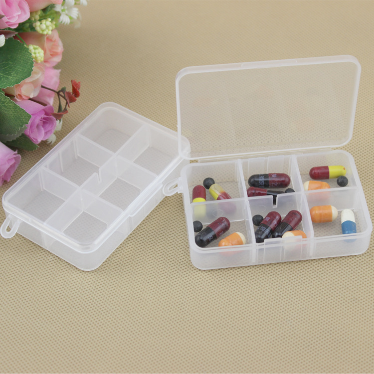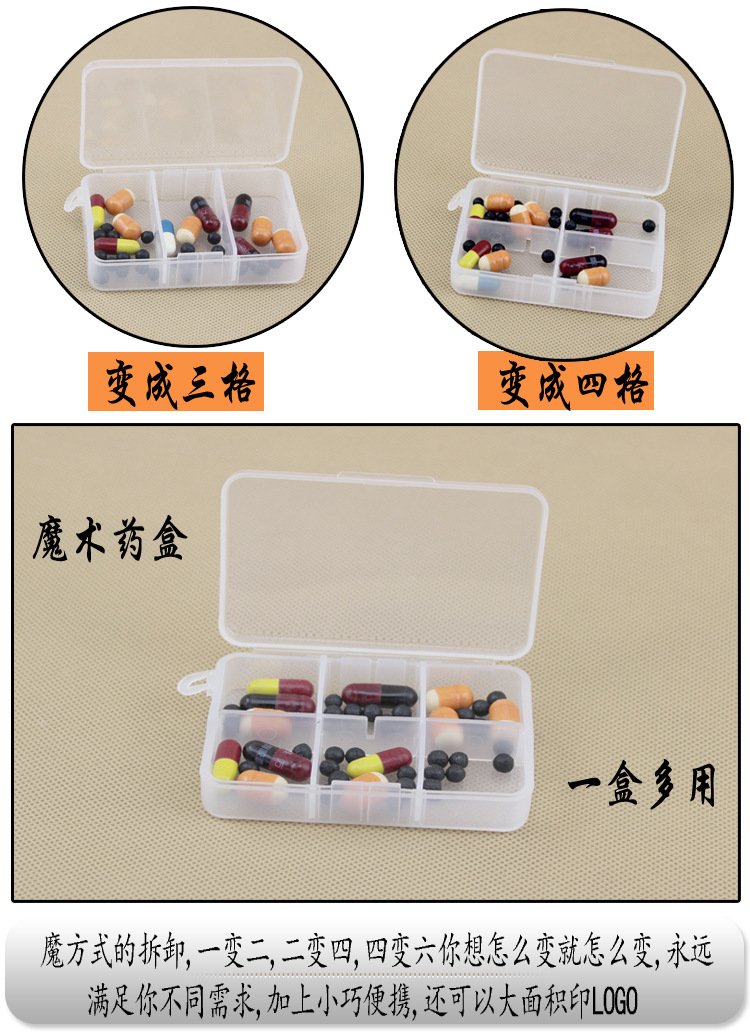 다양한 조합의 투명 6칸 편리한 약통 PP 소품 보관함 소형 부품 플라스틱 상자 포장 상자 해외 배송