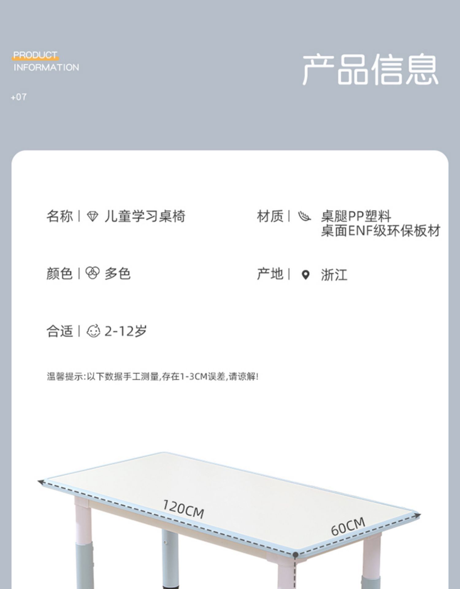 • 80*60cm 고래 블루 테이블과 의자 2개