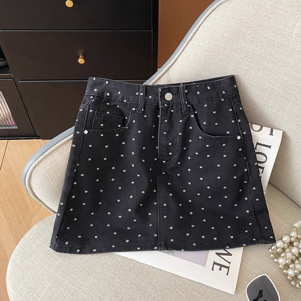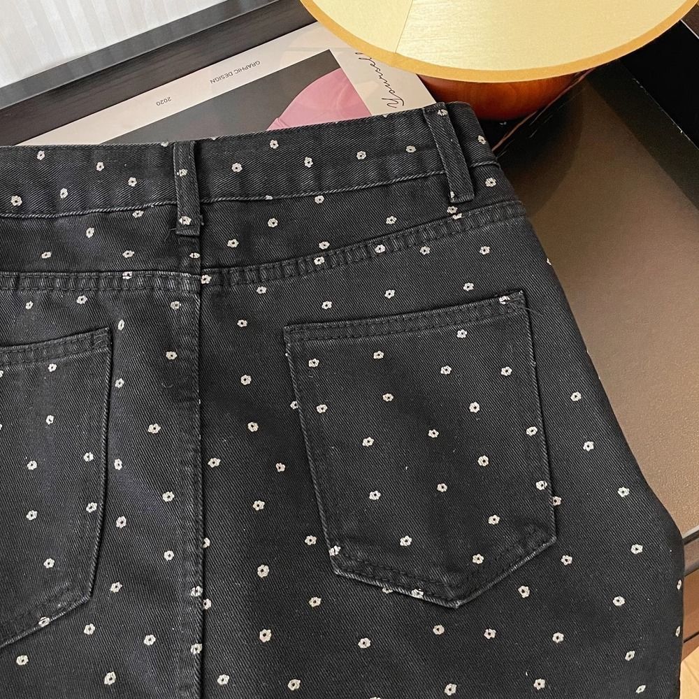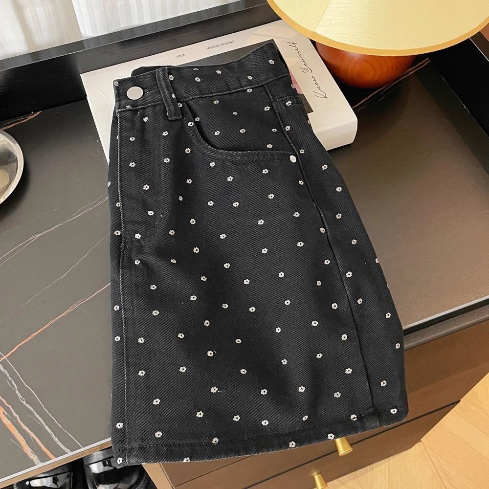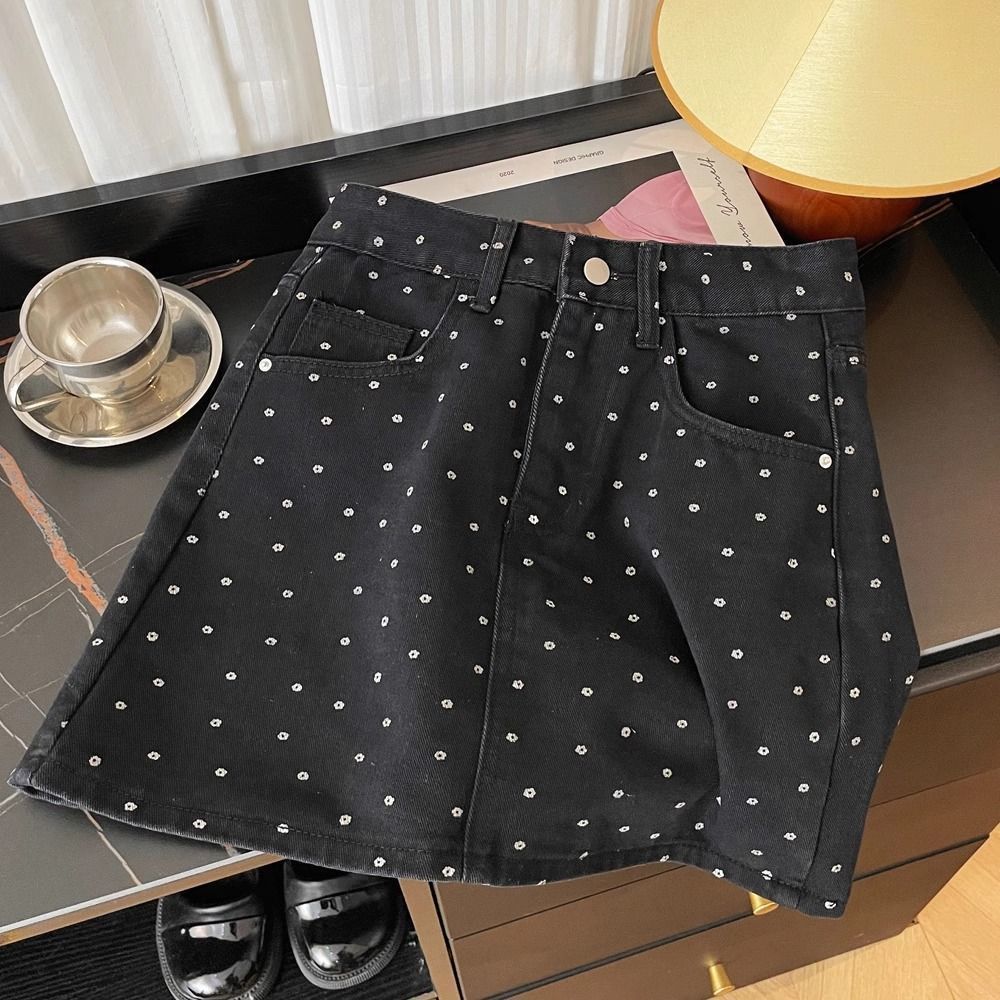 한국식 플로랄 데님 스커트 여자 2024 년 여름 뉴 에이지 감소 높은 허리 느슨한 슬리밍 A 라인 힙합 스커트스토어 가기