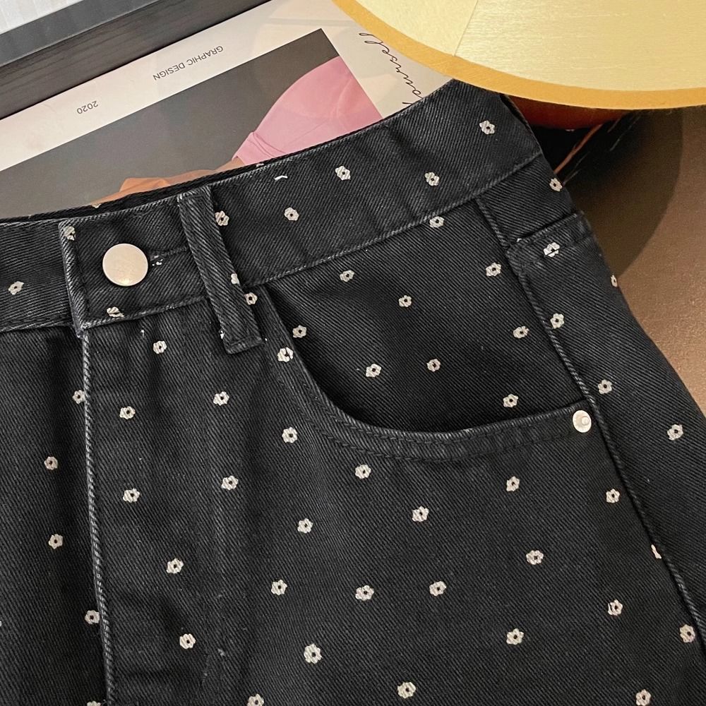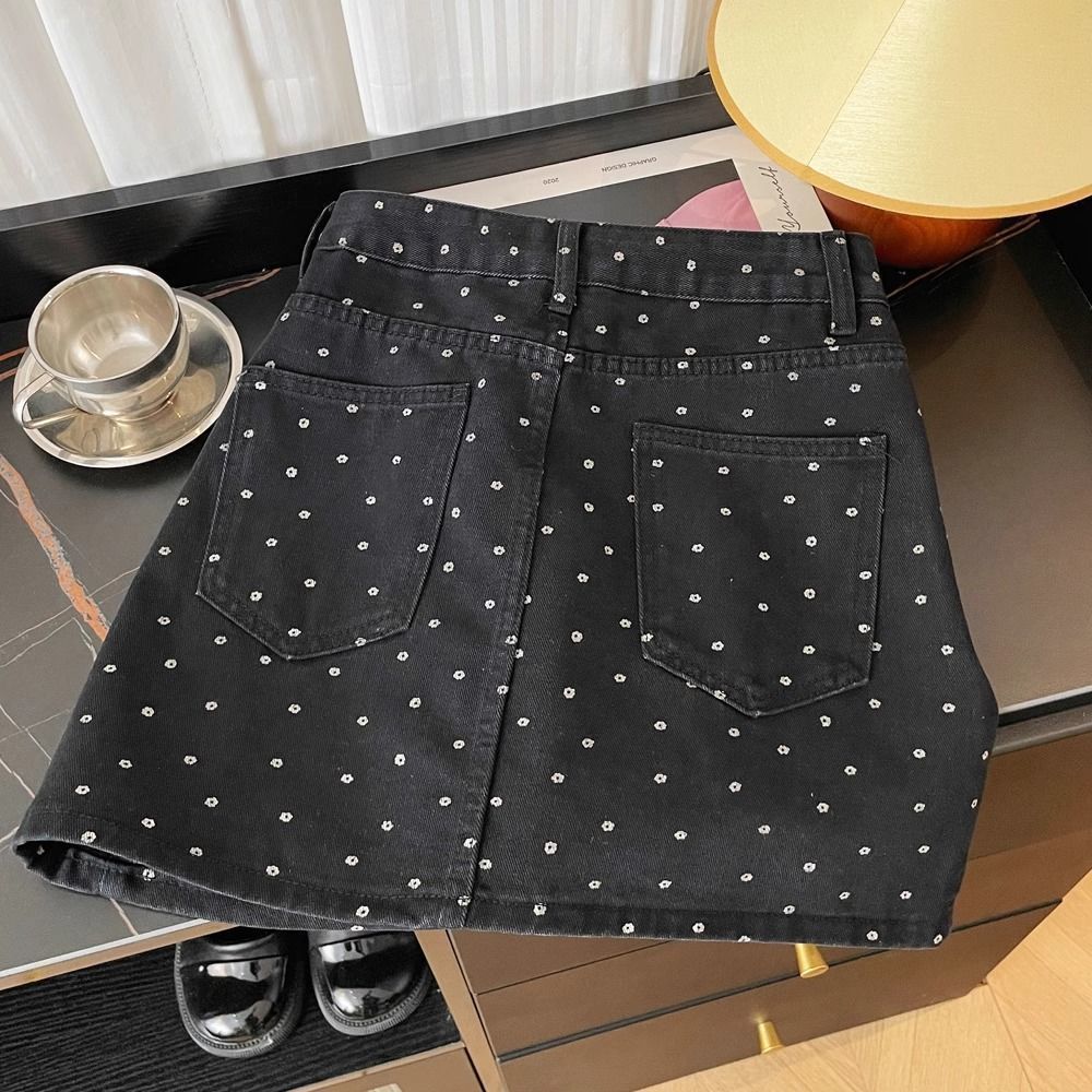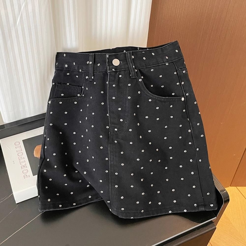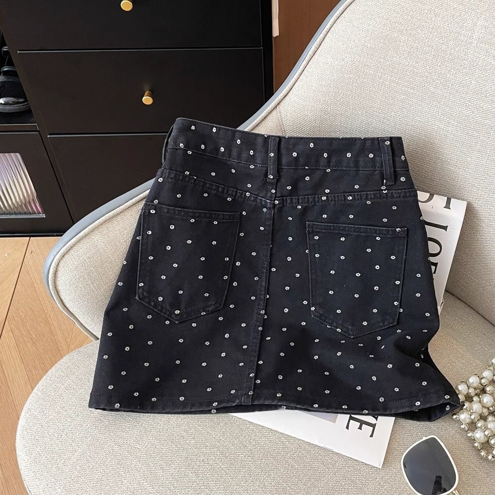 한국식 플로랄 데님 스커트 여자 2024 년 여름 뉴 에이지 감소 높은 허리 느슨한 슬리밍 A 라인 힙합 스커트스토어 가기