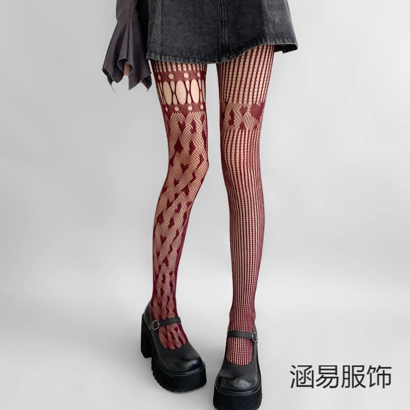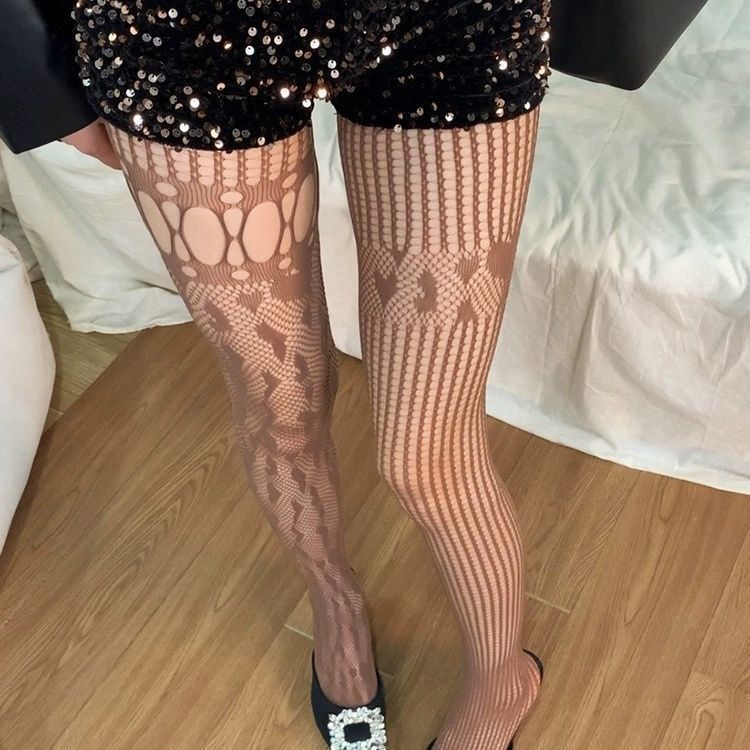 현대 레이스 스티칭 중공 그물 스타킹 봄과 여름 얇은 틈새 AB는 비대칭 낚시 그물 팬티 스타킹을 좋아합니다.스토어 가기