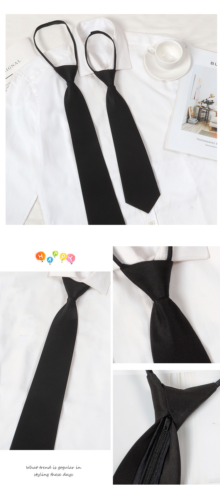 매듭 프리 블랙 올 매치 타이 캐주얼 한국 스타일 원피스 비즈니스 남성 지퍼 게으른 단색 넥타이스토어 가기