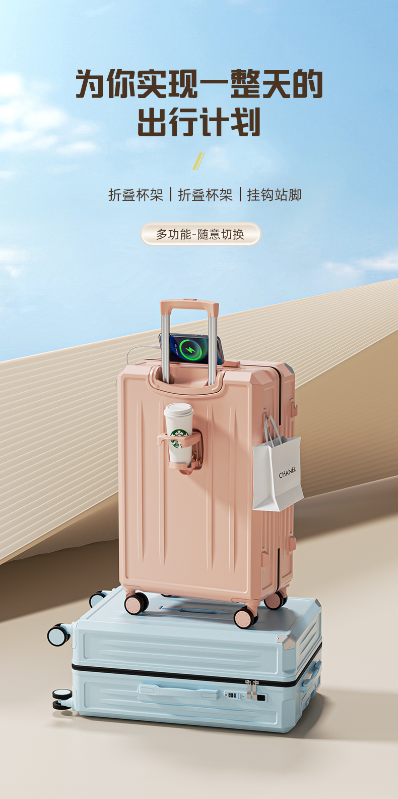 수하물 케이스 폭발 방지 지퍼 20 인치 탑승 케이스 다기능 트롤리 케이스 휴대용 가방 대용량 유니버설 휠