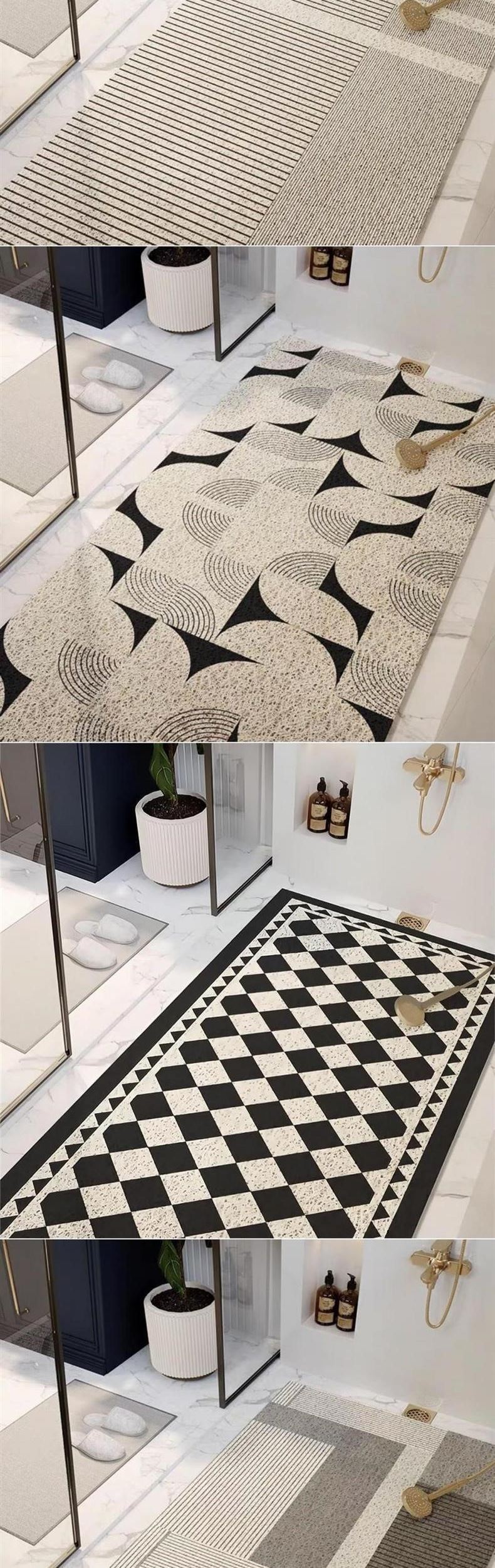 • 절반 흑백 욕실 바닥 매트